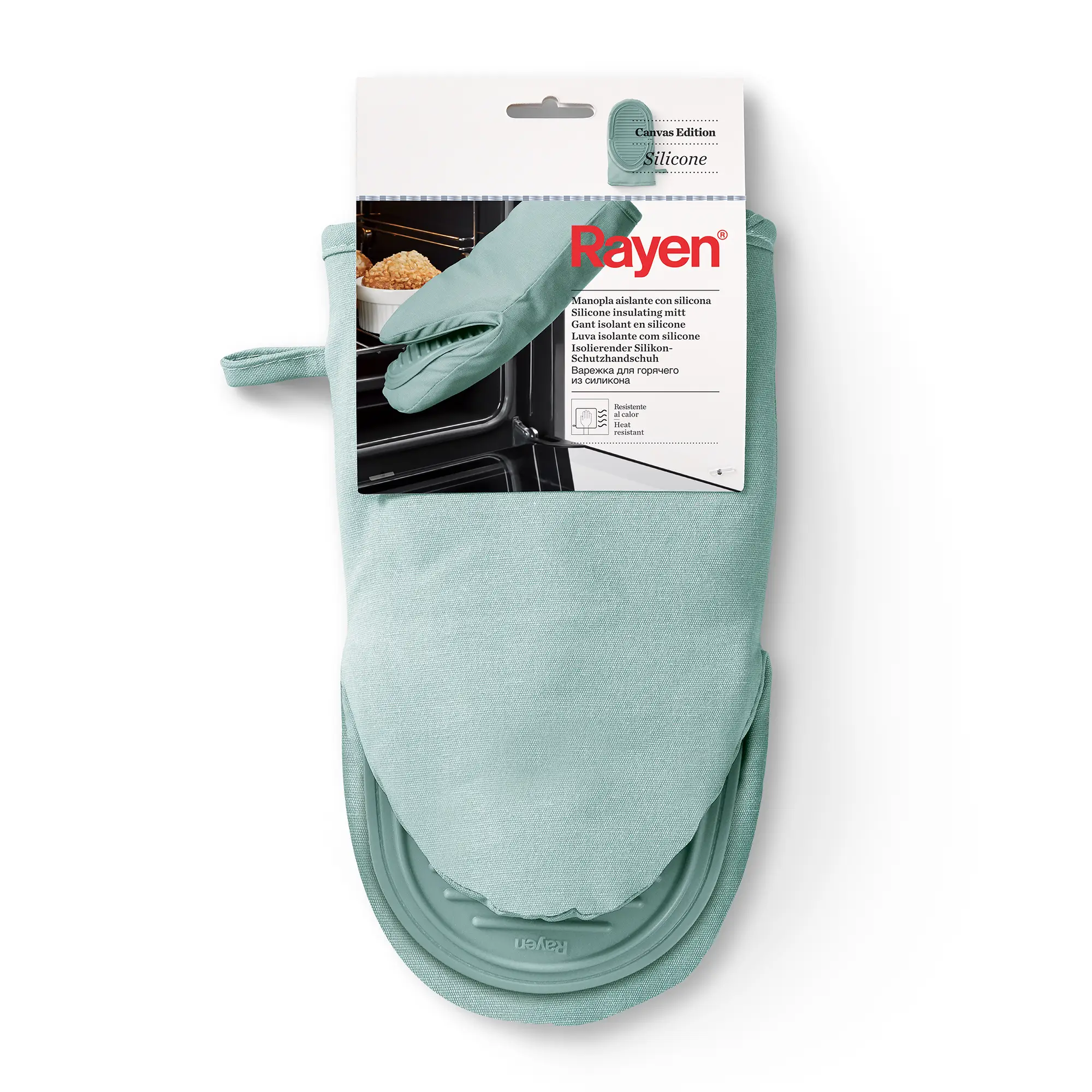Rękawica kuchenna Rayen została starannie wykonana z bawełny najwyższej jakości, zapewnia skuteczną izolację termiczną. Dodatek silikonu na jej powierzchni gwarantuje zwiększony poziom bezpieczeństwa, powodując jeszcze lepszy uchwyt, nawet dla najbardziej śliskich naczyń.