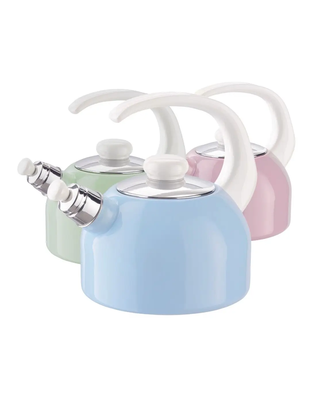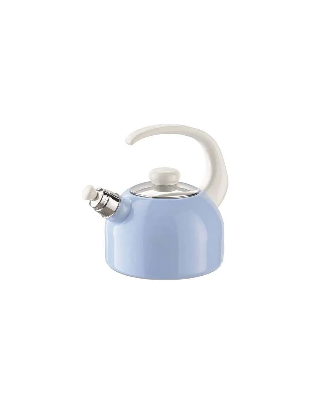Świetnie prezentujący się niebieski czajnik marki Riess ma 2 litry pojemności. Wykonany został z wysokiej jakości stali nierdzewnej. Jego idealnie gładka powierzchnia jest bardzo łatwa do czyszczenia. Tradycyjny biały uchwyt oraz gałki na gwizdku i pokrywie wykonane są z tworzywa sztucznego. Kiedy woda się gotuje czajnik zaczyna gwizdać. Można go używać na każdym typie kuchenki, w tym na indukcji. Produkt jest świetną ozdobą do każdej kuchni.