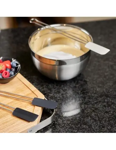 - Przednia część szpatułki wykonana jest z wytrzymałego silikonu i jest odporna na temperatury od -30°C do +200°C/-22°F do +392°F oraz na tłuszcze, oleje i kwasy domowe.