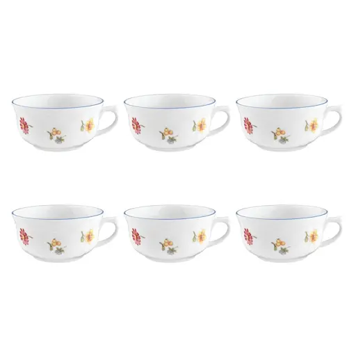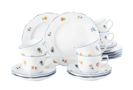 Wykonany z wysokiej jakości porcelany, komplet jest trwały, elegancki i łatwy w utrzymaniu. Doskonale sprawdzi się zarówno na co dzień, jak i podczas wyjątkowych okazji, wprowadzając na stół lekkość i naturalny, wiosenno-letni klimat.