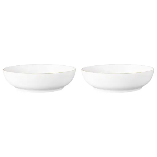 Zestaw dwóch misek o średnicy 17.5cm, to harmonijne połączenie elegancji i naturalnego designu. Biała porcelana stanowi doskonałe tło dla subtelnego złotego wzoru listków, który nadaje naczyniom wyrafinowanego i luksusowego charakteru.