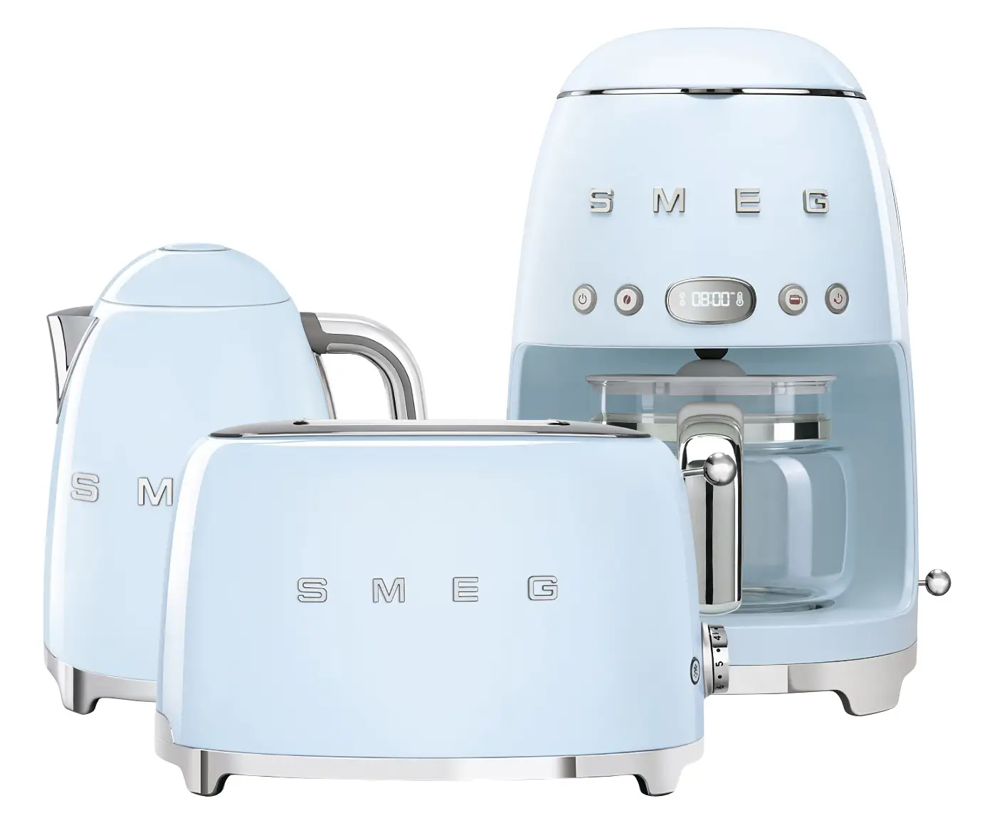 Zestawy produktów z ekspresami z linii 50’s Retro Style marki Smeg ułatwią i przyśpieszą przygotowywanie kawy lub śniadań - dołączony toster pozwoli zrobić grzanki, a czajnik umożliwi zagotowanie wody na herbatę. Konstrukcje urządzeń wykonane zostały z wysokiej jakości materiałów - m.in. tworzywa i stali nierdzewnej - i mają przemyślany design o opływowych kształtach i chromowanych podstawach, który w połączeniu z kolorowymi wykończeniami sprawia, że elegancko prezentują się one na blacie kuchennym - można je przechowywać na widoku, gdy akurat nie będą używane.