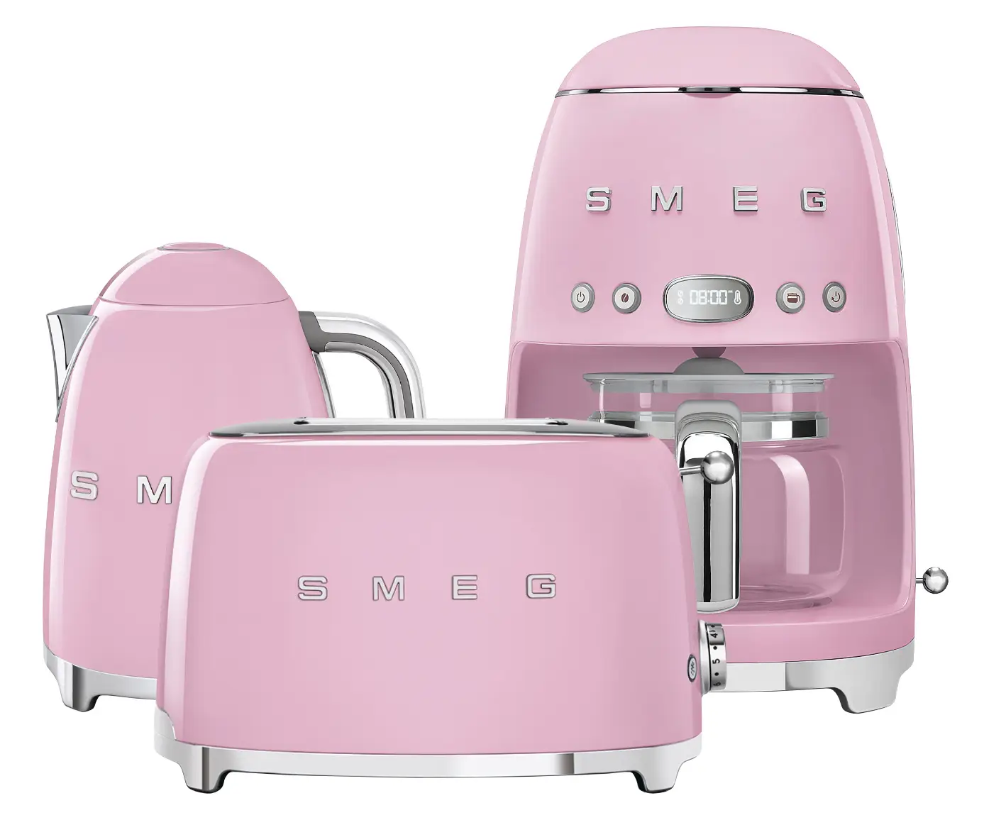 Zestawy produktów z ekspresami z linii 50’s Retro Style marki Smeg ułatwią i przyśpieszą przygotowywanie kawy lub śniadań - dołączony toster pozwoli zrobić grzanki, a czajnik umożliwi zagotowanie wody na herbatę. Konstrukcje urządzeń wykonane zostały z wysokiej jakości materiałów - m.in. tworzywa i stali nierdzewnej - i mają przemyślany design o opływowych kształtach i chromowanych podstawach, który w połączeniu z kolorowymi wykończeniami sprawia, że elegancko prezentują się one na blacie kuchennym - można je przechowywać na widoku, gdy akurat nie będą używane.
