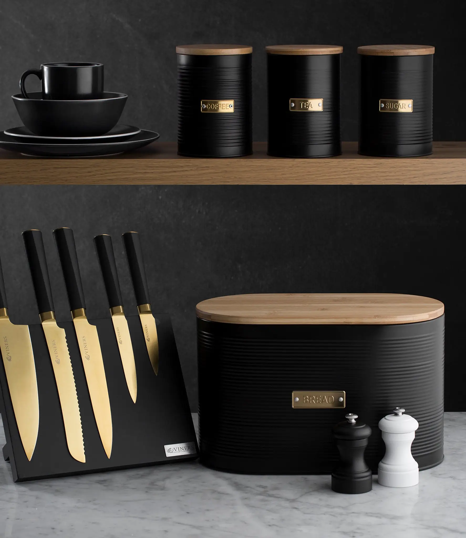 Marka Typhoon działa na rynku od 1991 roku, tworząc produkty o wysokiej jakości z myślą o dbaniu o środowisko. Kolekcję Otto Black tworzą stylowe, praktyczne pojemniki i doniczki o czarnej, matowej, prążkowanej powierzchni. Produkty te oznaczono złotymi tabliczkami identyfikacyjnymi, które pozwolą łatwo rozróżnić je w kuchni. Idealnie wpasują się one w różne wystroje wnętrz, ułatwiając utrzymanie porządku i dodając elegancji.
