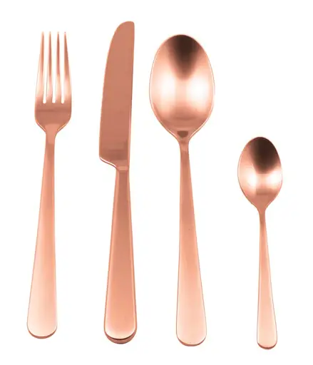 Komplet sztućców 16 elementów dla 4 osób w kolorze miedzianym z serii Manufacture Cutlery doskonale sprawdzi się przy podawaniu potraw, a atrakcyjny wygląd umili spotkania przy specjalnych okazjach lub w codziennym użytku.
