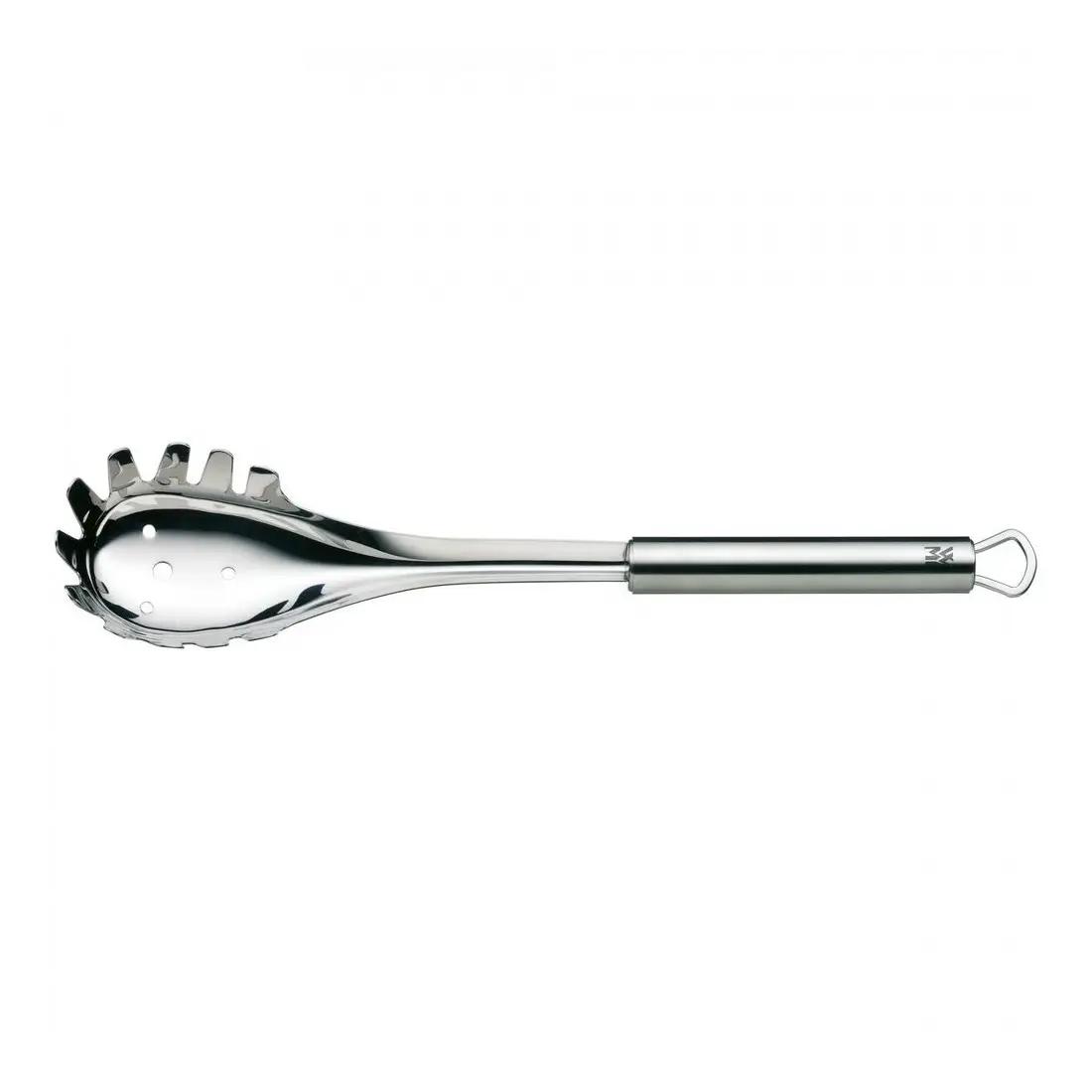 Masz trudność z wyciąganiem makaronu z garnka? Tylko dlatego, że nie używasz wygodnej i poręcznej łyżki do makaronu Profi Plus firmy WMF, przy której wydobywanie makaronu od dziś stanie się bardzo proste. Wykonana z najlepszej jakości stali Cromargan®, co gwarantuje najlepszą jakość na długi czas użytkowania. Łyżka posiada wygodny uchwyt wykonany z matowej stali, wypustki zapobiegające wyślizgiwaniu się nitek makaronu, otworki w podstawie do odprowadzania wody. Do tego narzędzie posiada uchwyt do zawieszenia na haczyku. Przystosowany do mycia w zmywarce.