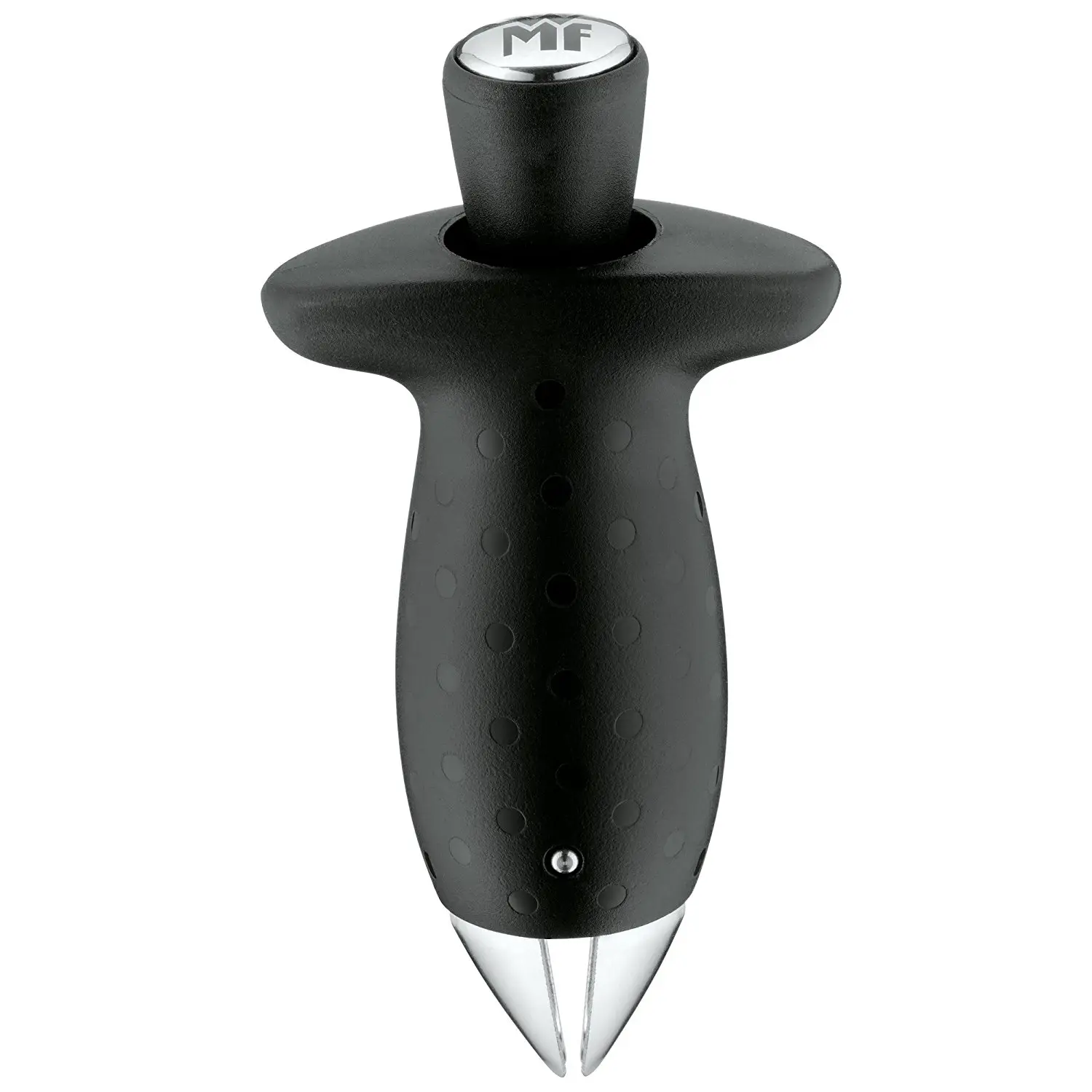 Urządzenie do usuwania szypułek Top Tools to specjalistyczny przyrząd do oczyszczania truskawek i pomidorów. Dzięki niemu usuwanie szypułek jest szybkie i proste, wystarczy nacisnąć przycisk na uchwycie, ostrzem przebić owoc, puścić przycisk i wyciągnąć łodygę. Wykonanie z wysokiej jakości stali nierdzewnej Cromargan® zapewnia łatwość czyszczenia i wysoką trwałość urządzenia.