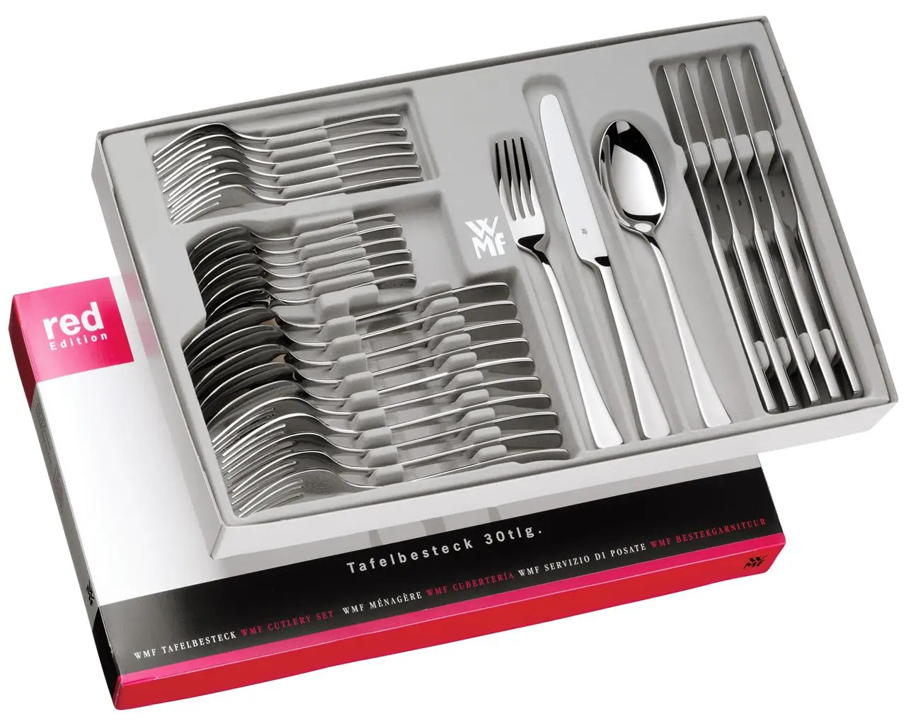 Rodzinny obiad wymaga odpowiednich sztućców, dlatego z przyjemnością prezentujemy kolekcję Denver z katalogu marki WMF, która odznaczająca się prostymi, a zarazem harmonijnymi kształtami, idealnie pasującymi zarówno do nowoczesnych, jak i tradycyjnych aranżacji jadalni. Wszystkie sztućce zostały wykonane z Cromarganu® - będącego wysokiej jakości stopem stali nierdzewnej 18/10, który łatwo się czyści, jest trwały, odporny na kwasy, rdzę i neutralny dla smaku.