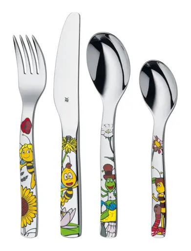 Sztućce zdobi kolorowy wzór z postacią Kubusia Puchatka - znanego i kochanego przez wszystkie dzieci misia ze Stumilowego Lasu oraz jego przyjaciół - Tygryska i Prosiaczka. Kiedy Kubuś zagości przy stole z pewnością każde dziecko skupi się na jedzeniu.