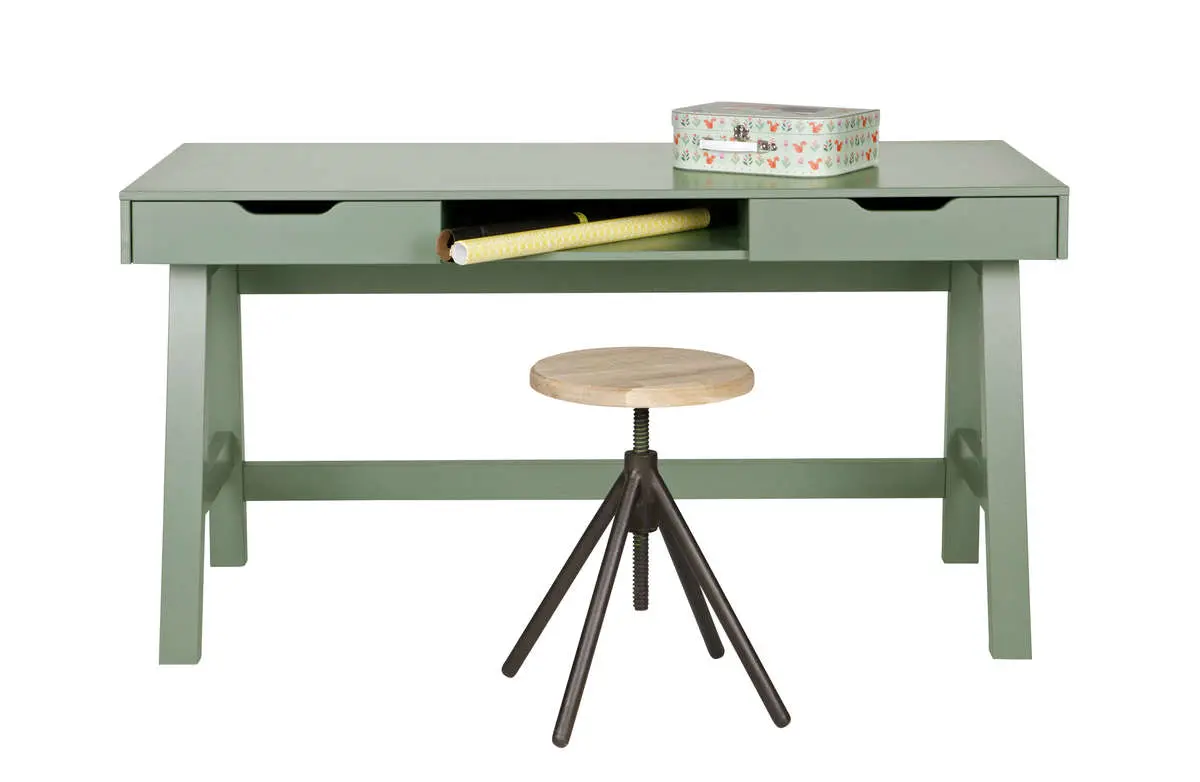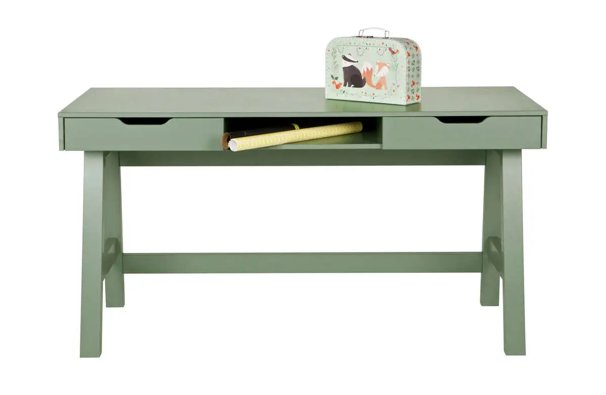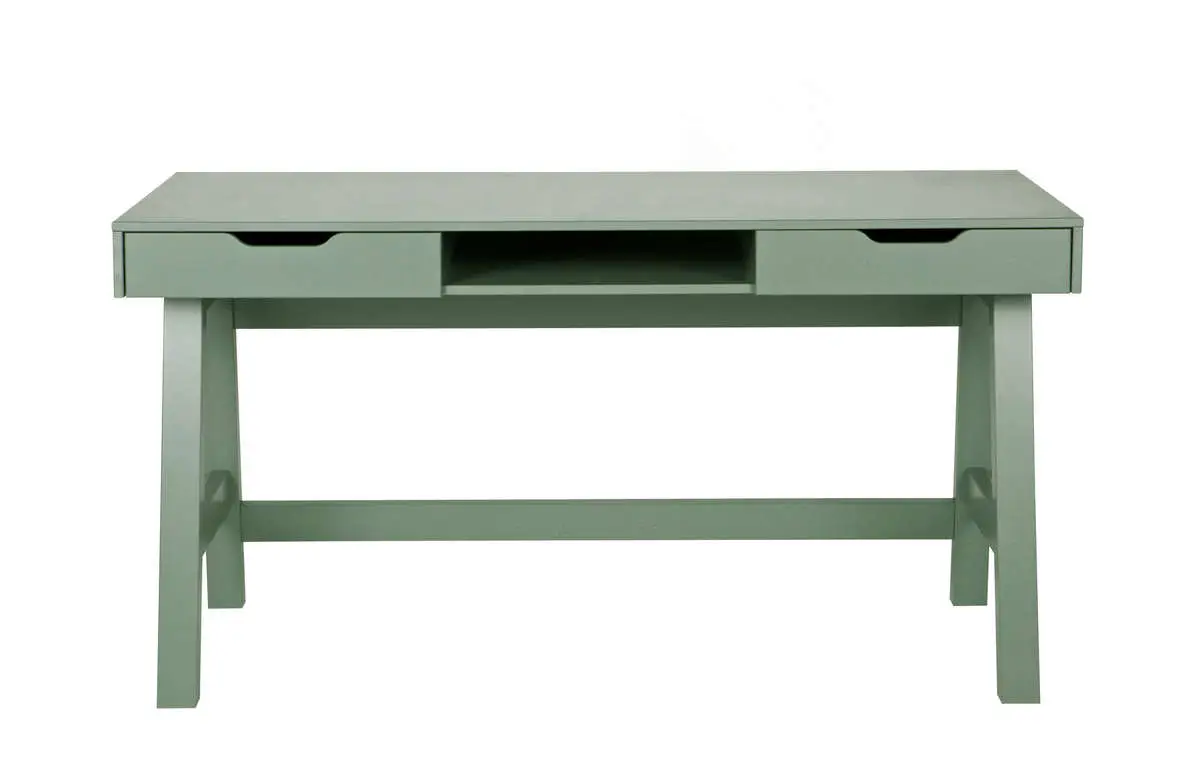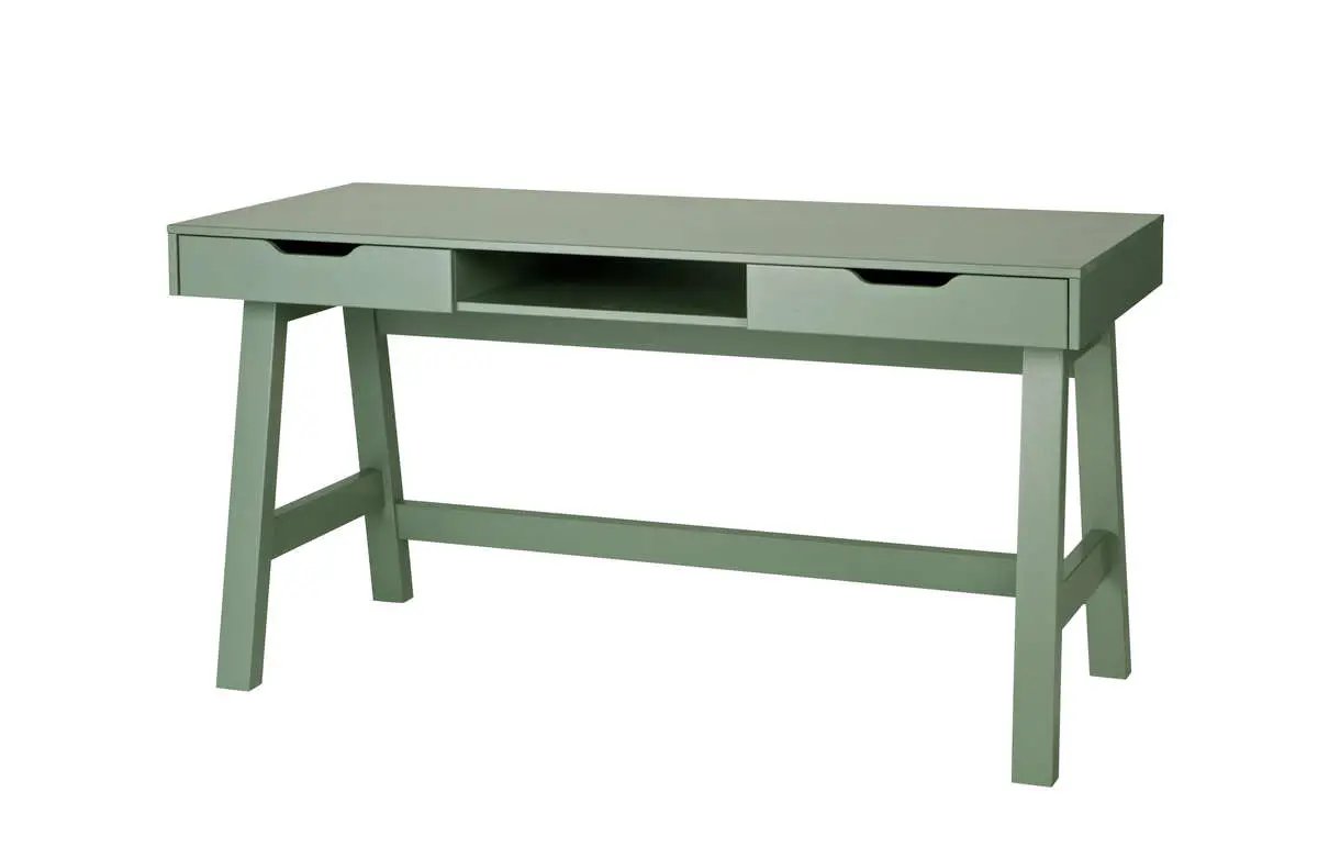 Wykonane z drewna sosnowego, wykończone w kolorze oliwkowym. Posiada prostą podstawę oraz długi blat, który zapewni komfort pracy oraz miejsce na ułożenie komputera lub laptopa. NIKKI posiada również dwie, zamykane szuflady oraz jedną otwartą półkę, w której możesz przechowywać niezbędne rzeczy.
