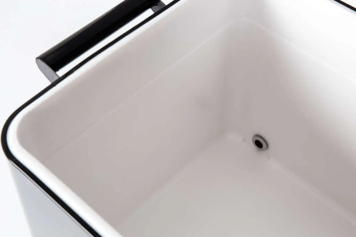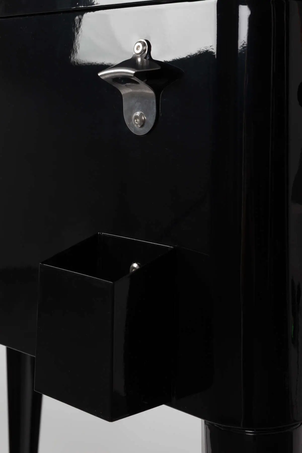 Chłodnica polipropylenowa pokryta blachą żelazną, malowana proszkowo na czarno. Wewnątrz pianka PU zapewniająca chłód. Kółka z PCV i żelaza.