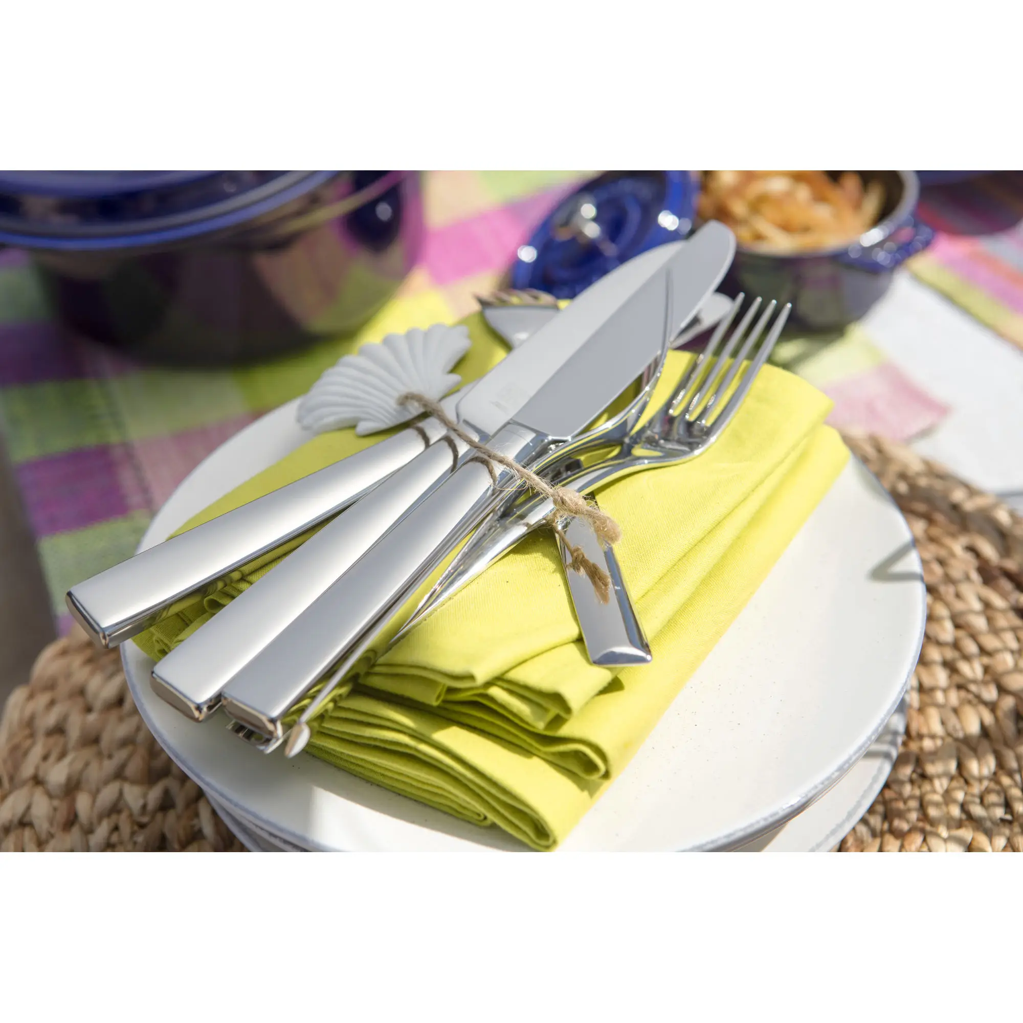 Zestaw wykonany został z najwyższej jakości stali nierdzewnej, polerowanej. Przeznaczony jest dla 12 osób. Sztućce nadają się do mycia w zmywarce. Całość zapakowana jest w eleganckie pudełko.