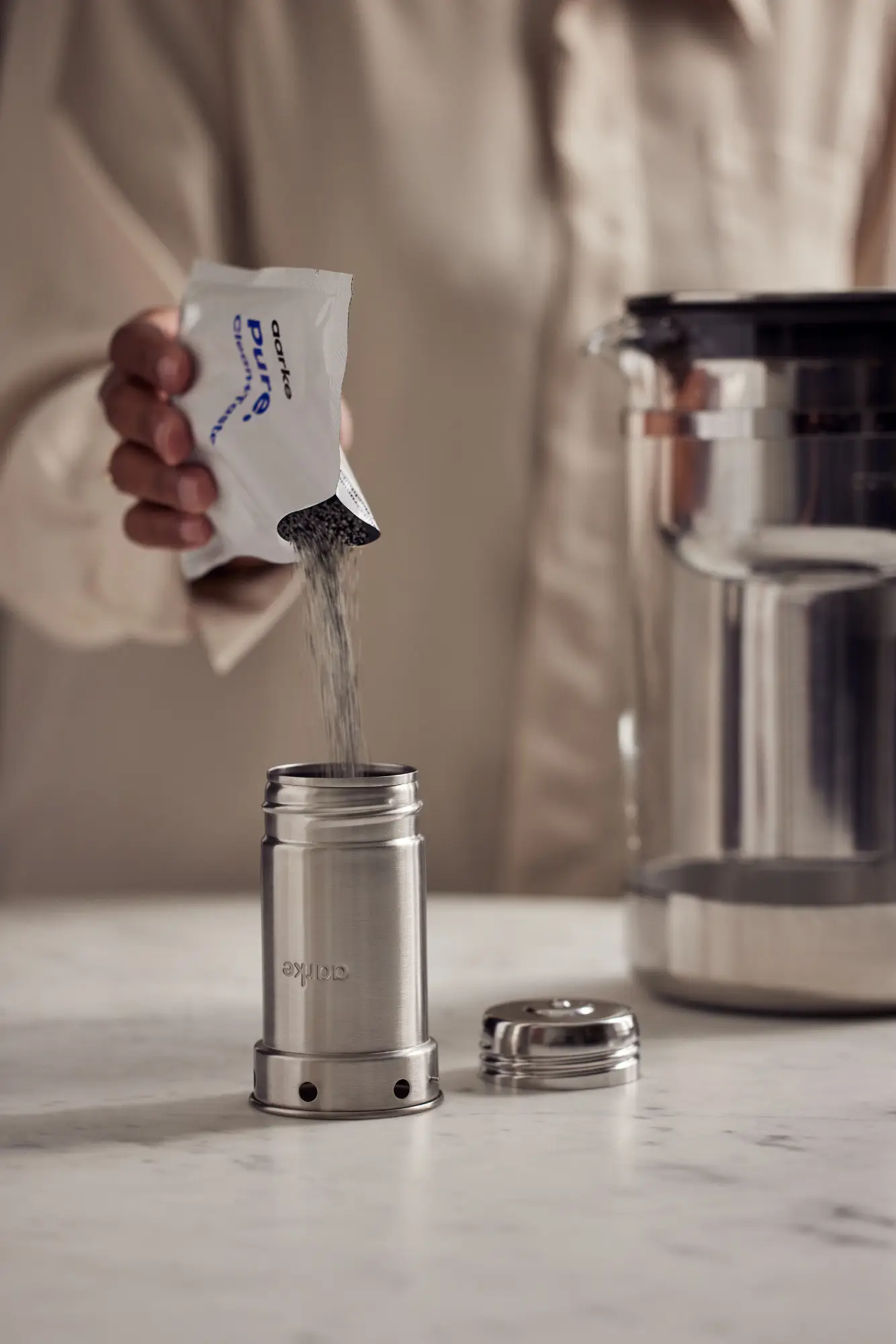 - w komplecie 1 szt granulatu filtrującego Aarke Pure i ściereczka