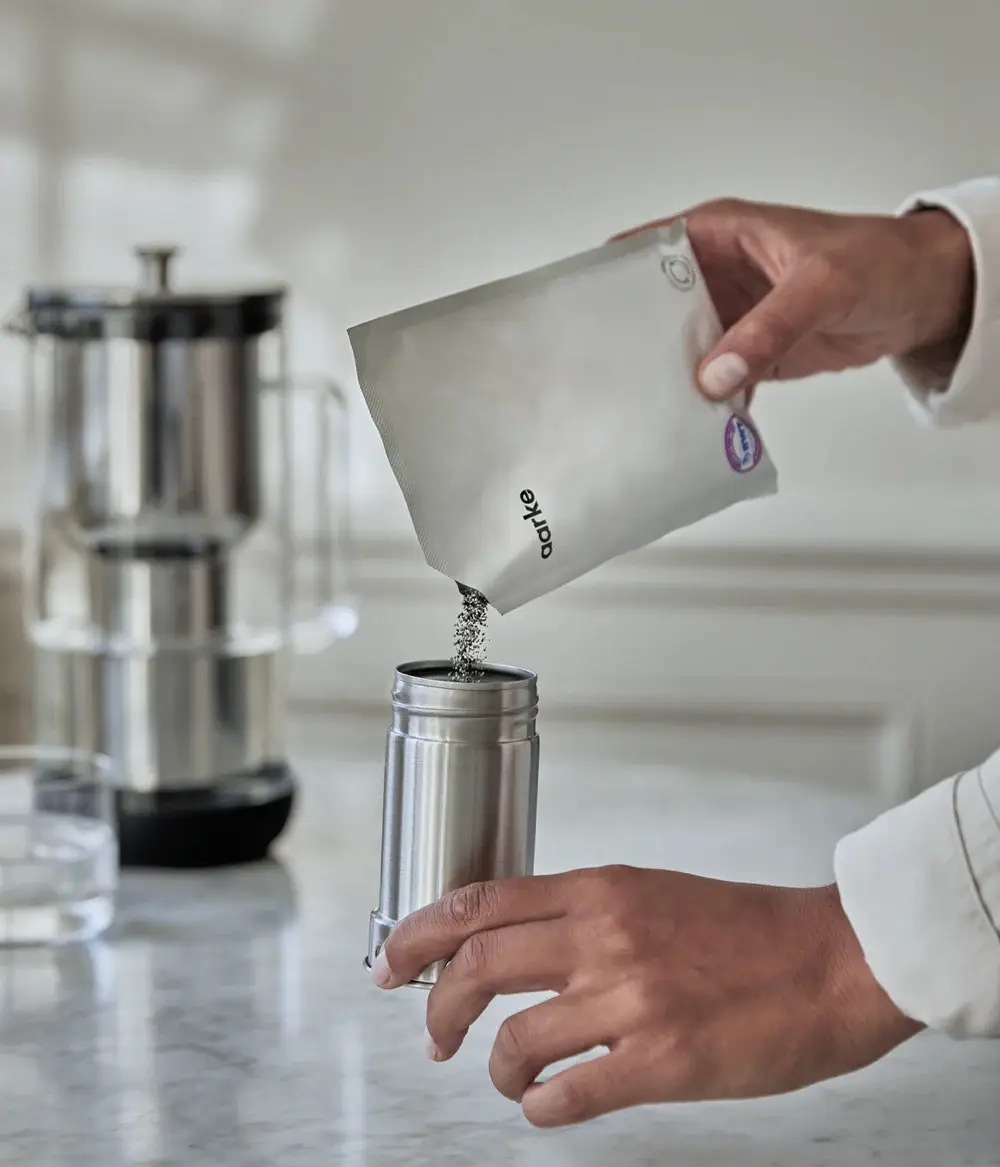 Aarke oferuje dzbanki filtrujące wodę z filtrami Pure. Wykorzystywany w nich granulat należy wystarcza na 4 tygodnie lub do 120 litrów wody, po czym należy go wymienić na nowy.