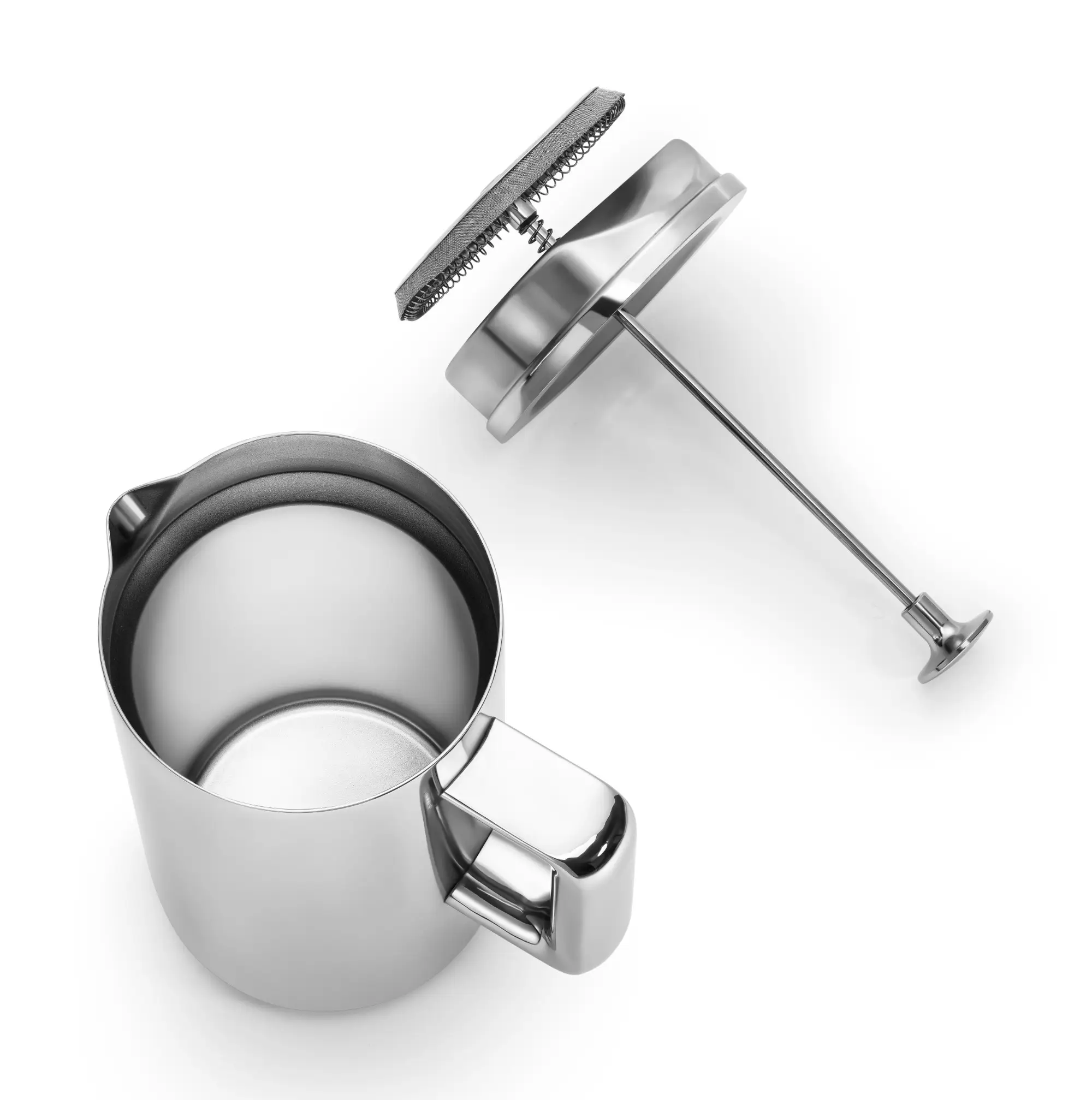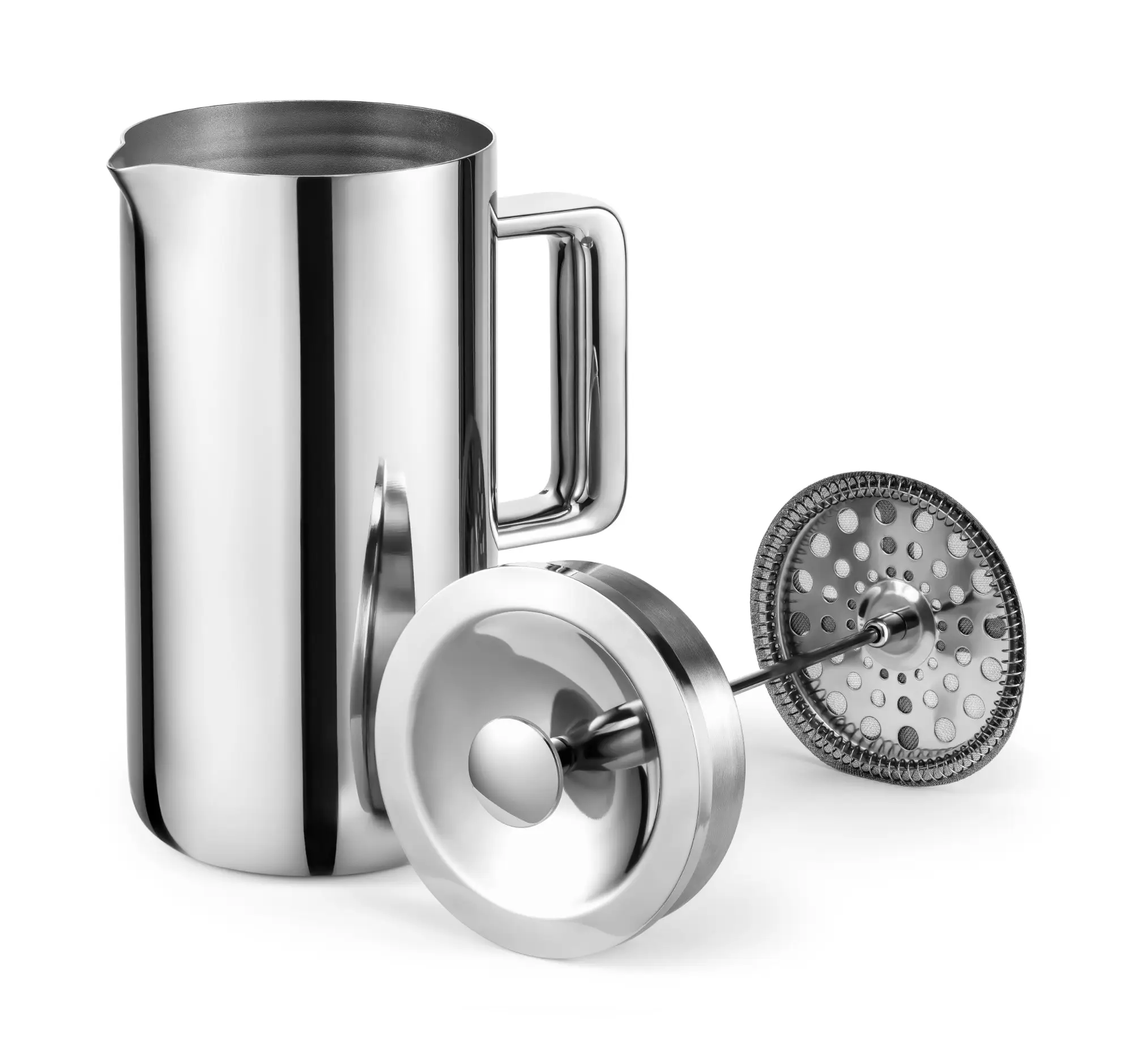 Zaparzacz tłokowy French Press od Aarke to ponadczasowy przedmiot do codziennego użytku w pogoni za idealną kawą, łączący w sobie inżynierię i rytuał. Zaprojektowano go nie tylko z myślą o wydajności, ale i o precyzji, i wykonano w całości ze stali nierdzewnej SUS304 dla odpowiedniej trwałości.
