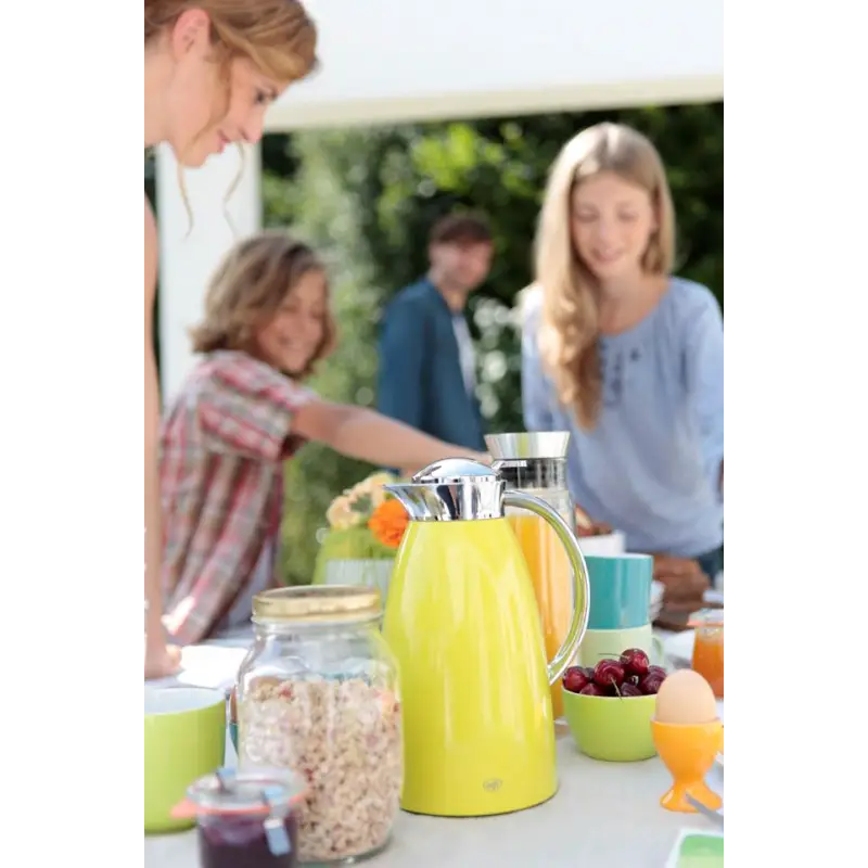 Zaokrąglony, ergonomiczny uchwyt oraz odpowiednio wyprofilowany dzióbek gwarantują wygodne nalewanie – termos można obsługiwać jedną ręką. Elementy te błyszczą się – zostały pokryte chromem.