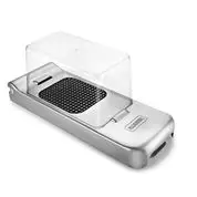 Ten niezwykle praktyczny krajacz do warzyw pomoże nam w przyrządzeniu surówki lub sałatki, a także wszelkich innych dań z zastosowaniem warzyw. Bez problemu pokroi niemal każde warzywo. Wykonany został ze stali nierdzewnej, wykończonej na mat. Działa na zasadzie mechanizmu zatrzaskowego; wkładamy do niego przeznaczone do pokrojenia warzywo, a następnie zamykamy. Do plastikowego, przezroczystego pojemnika wpadają paski warzywa. Posiada wymienne wkładki tnące do różnych grubości krojenia: 3 x 3 mm, 6 x 6 mm, 9 x 9 mm. Nadaje się do mycia w zmywarce.