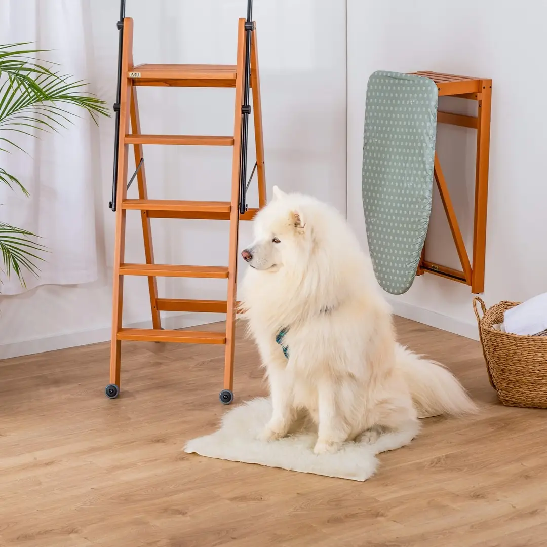 Głównym atutem deski STIROJOLLY jest oczywiście jej kompaktowy design. Pomimo swoich niewielkich rozmiarów, posiada wystarczająco dużą powierzchnię roboczą o wymiarach 86 x 38 cm, co pozwala na wygodne prasowanie różnego rodzaju odzieży. Duży uchwyt na żelazko wykonany z solidnego drewna bukowego zapewnia stabilne i bezpieczne miejsce do odkładania żelazka w trakcie prasowania. Po zakończeniu pracy, złożona deska zajmuje zaledwie 31 cm, co sprawia, że jest idealnym rozwiązaniem do niewielkich pomieszczeń.