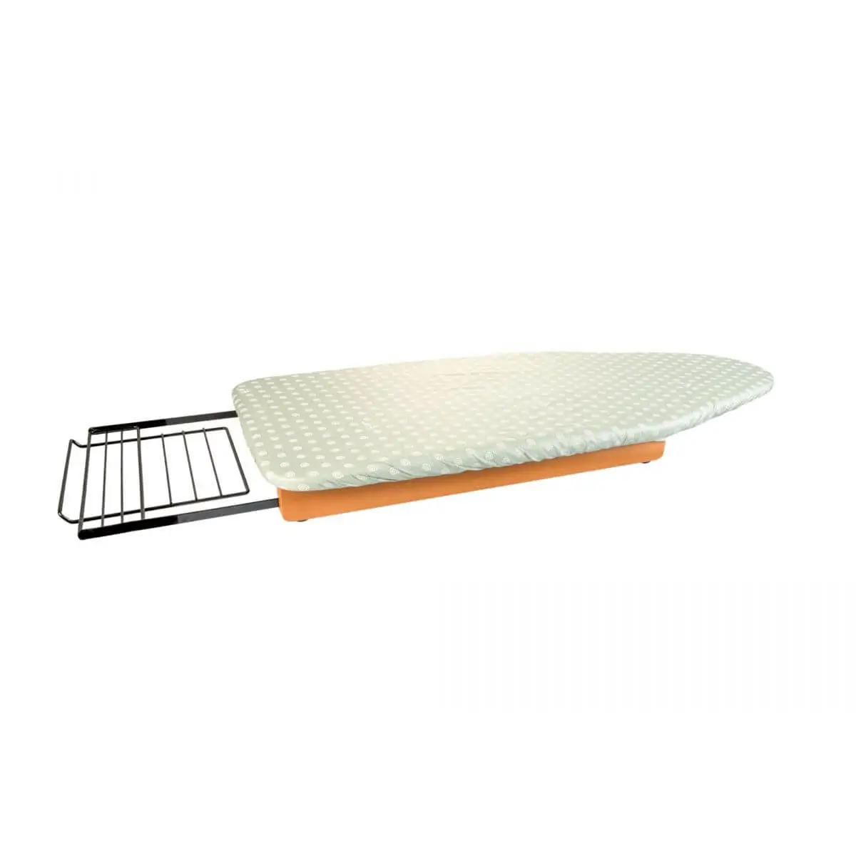 Wygodna powierzchnia robocza o wymiarach 108 x 45 cm, wykonana z ocynkowanego i perforowanego metalu, sprawia, że prasowanie staje się niesamowicie łatwe. Szeroki wysuwany uchwyt na żelazko zapewnia stabilne i bezpieczne miejsce do odkładania żelazka w trakcie prasowania. Dodatkowo, deska STIROPRATICO wyposażona jest w zielony pokrowiec wykonany w 100% z bawełny. Jest on odporny na wysokie temperatury i świetnie absorbuje parę wodną, co zapewnia idealne warunki do wygładzenia tkanin.