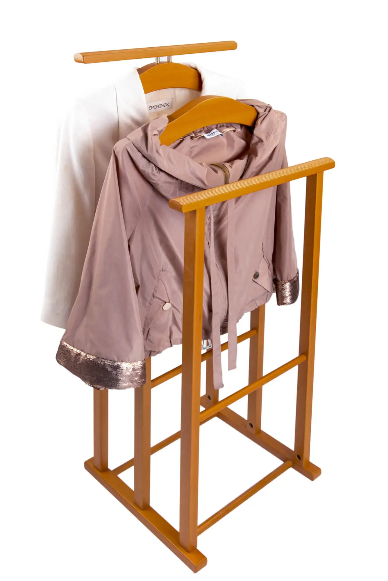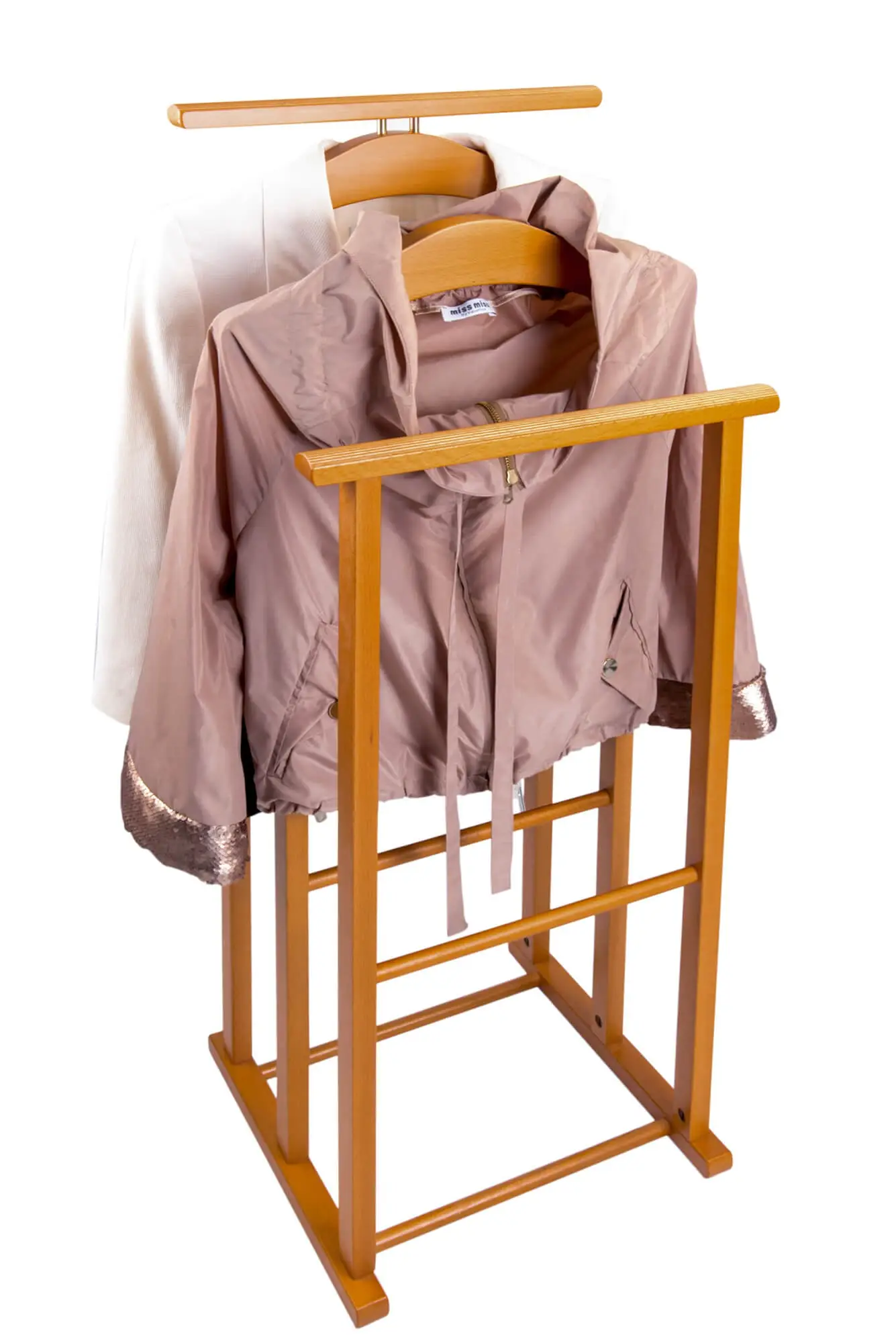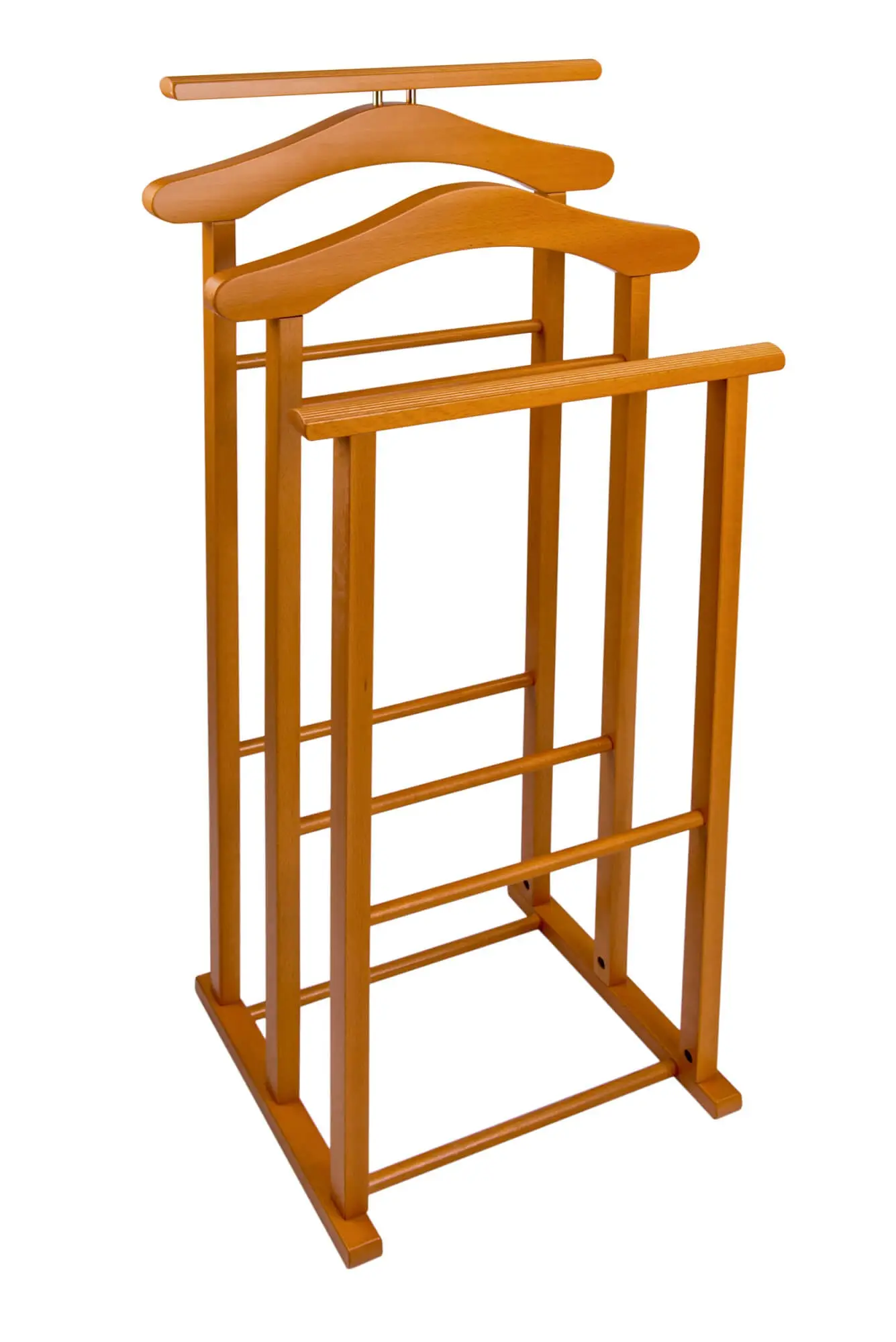 Wykonany z litego drewna bukowego zapewnia stabilność, pozwalając na przechowywanie odzieży w nienagannym stanie. Stojak składa się z 2 wyprofilowanych wieszaków na koszule lub marynarki oraz 2 uchwytów na spodnie. Dodatkowo jego konstrukcja pozwala na przechowywanie butów pod spodem. Dzięki stojakowi MAXI z łatwością utrzymasz swój strój w idealnym stanie i gotowości do założenia następnego dnia. Ponadto, posiada gumowe nóżki, które chronią podłogę przed zarysowaniami i zwiększają jego stabilność.