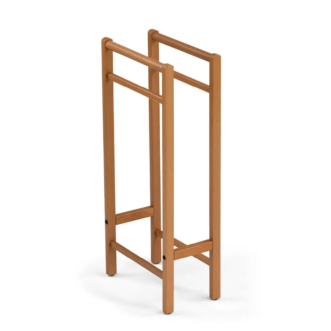 SALVI' to elegancki stojak na ręczniki, który ułatwi Ci organizację przestrzeni w łazience. Stabilna konstrukcja z drewna bukowego pozwala na swobodne ustawienie go w pobliżu umywalki, wanny lub prysznica, zapewniając wygodny dostęp do suchych ręczników, a jednocześnie miejsce do odwieszania tych mokrych.