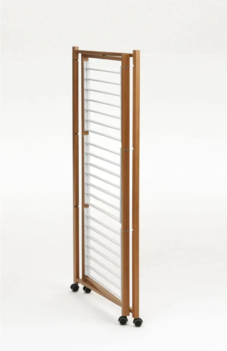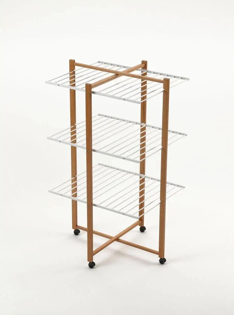 Jej solidna konstrukcja z litego drewna bukowego zapewnia stabilność podczas użytkowania. Pokryte aluminium druty są trwałe i odporne na korozję, zapewniając długotrwałe użytkowanie. Niezależne poziomy pozwalają na wygodne rozmieszczenie prania, a łatwy system otwierania i składania sprawia, że suszarka jest prosta w obsłudze dla każdego członka rodziny. Wyposażona w obrotowe koła z miękką gumą, suszarka KARISMA jest łatwa w przemieszczaniu, a jednocześnie nie rysuje podłogi.