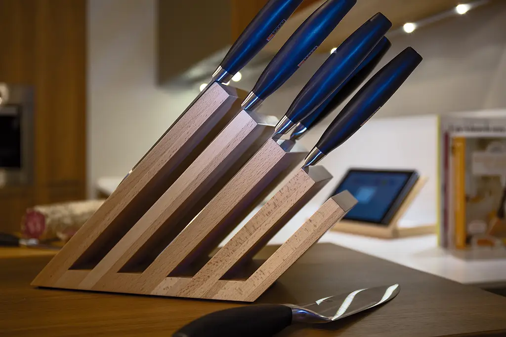 - Może pomieścić do 14 noży o długości ostrza do 29.5 cm