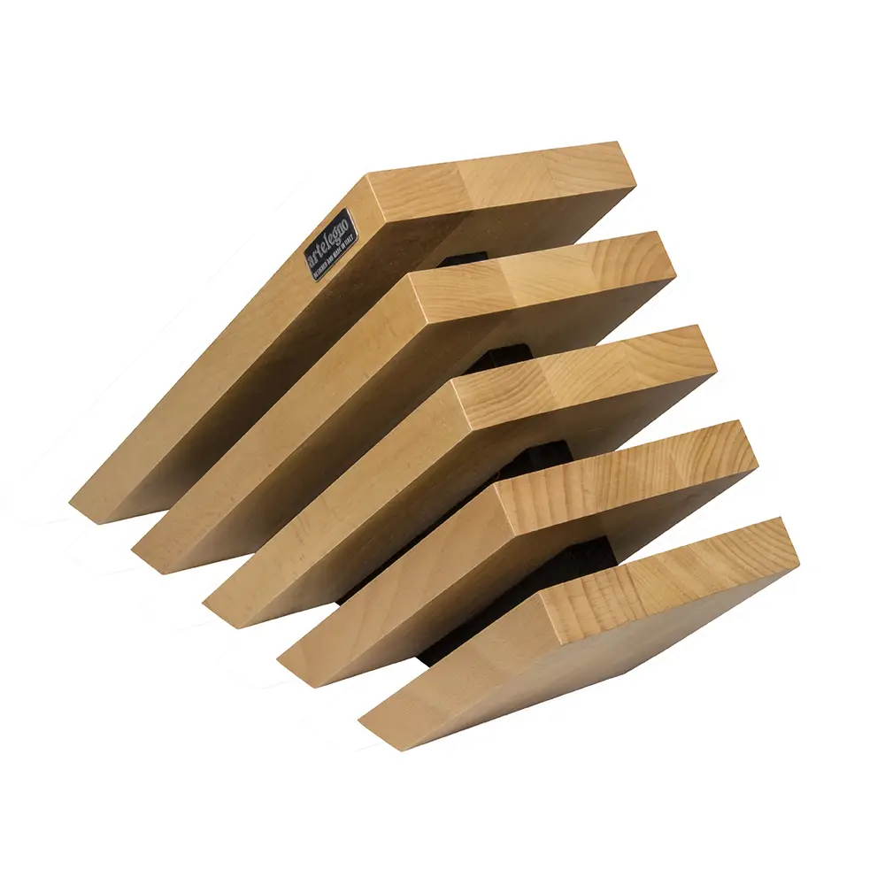 Stojak może pomieścić do 10 noży o maksymalnej długości ostrza 29.5 cm. Wykonany jest z litego drewna bukowego i pokryty specjalnym lakierem dopuszczonym do kontaktu z żywnością. Dostępny jest w wersji z drewna bukowego oraz ze szlachetnego drewna orzechowego. Oba modele znajdą swoje miejsce zarówno w kuchni domowej, jak i profesjonalnej. Doskonały wybór dla miłośników elegancji i jakości w jednym.