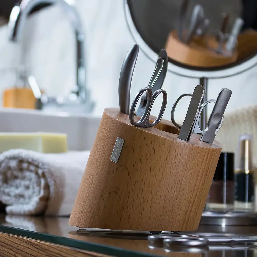 Pojemnik do przechowywania przyborów do manicure z drewna bukowego