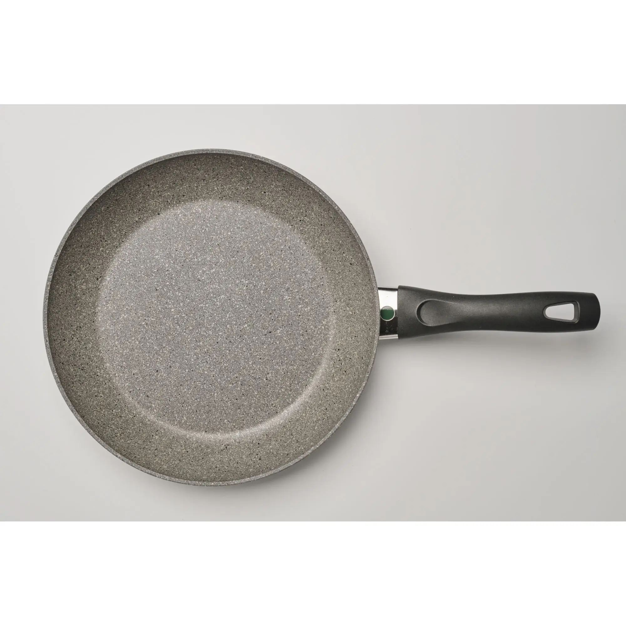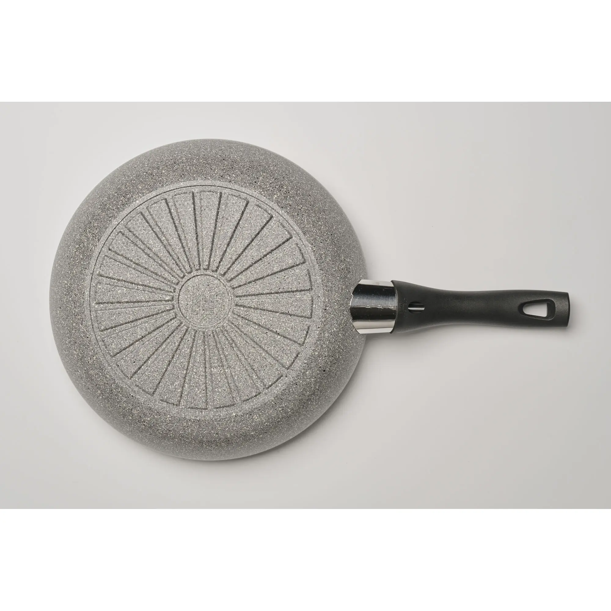 Patelnia indukcyjna Ferrara 32 cm przeznaczona jest do smażenia potraw w większej ilości. Wykonana została z kutego na zimno, litego aluminium. Gruba, masywna podstawa posiada wbudowany element stalowy, który znakomicie utrzymuje ciepło i umożliwia stosowanie patelni na kuchence indukcyjnej. Niezwykle wytrzymała powłoka Granitium Extreme z cząstkami mineralnymi zapobiega przywieraniu potraw. Wygodny uchwyt z tworzywa sztucznego, wzmocniony jest elementem ze stali i zapewnia bezpieczne przenoszenie naczynia.