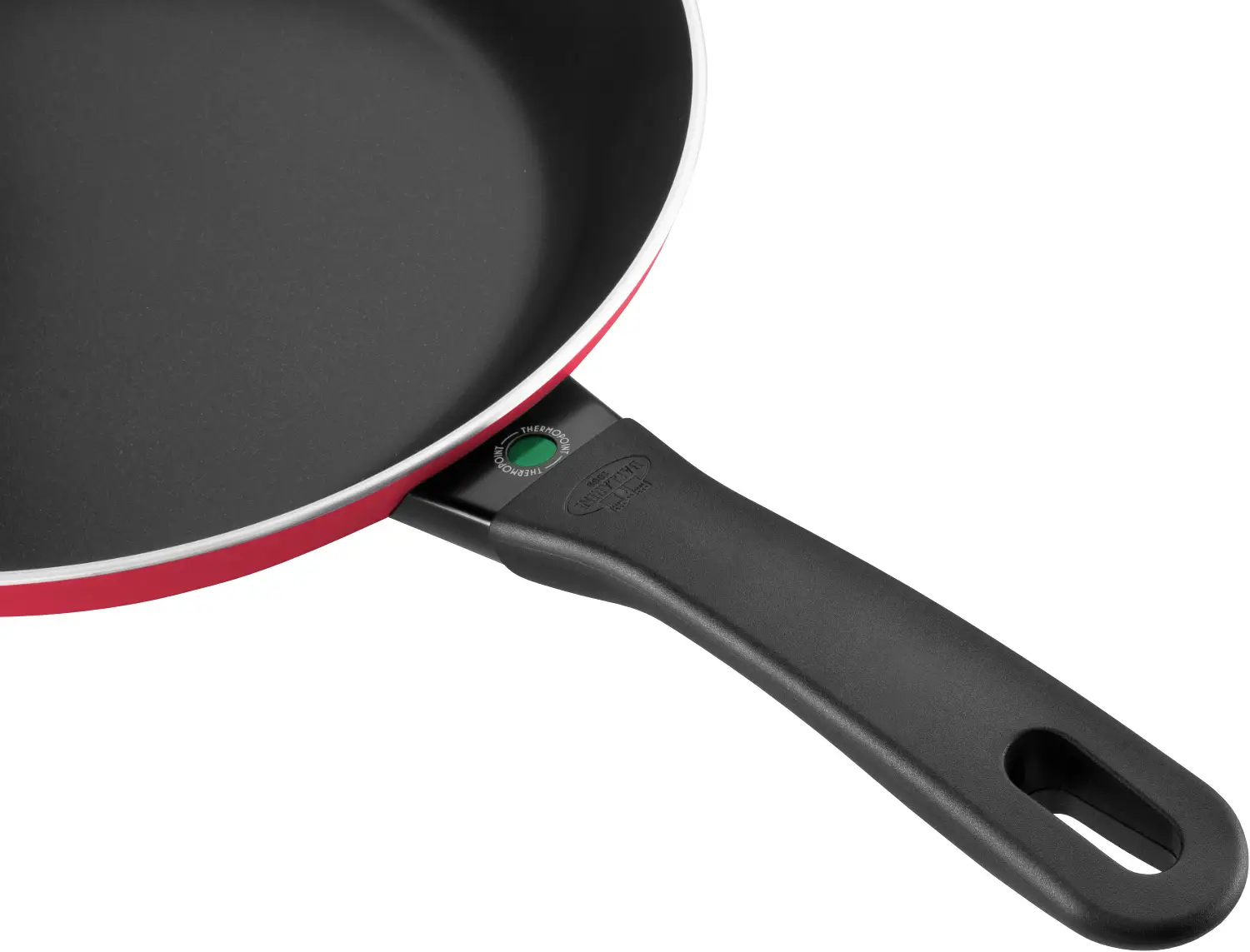 Prezentowana patelnia o średnicy 20 cm i kolorze czerwonym po wewnętrznej stronie pokryta została innowacyjną, błyszczącą, czarną powłoką nieprzywierającą KERA GLOSS, która umożliwia smażenie w wysokich temperaturach dla pysznych, złocistych i chrupiących potraw. Kontrolę temperatury ułatwia przy tym umieszczony w uchwycie wskaźnik THERMOPOINT, który zmienia kolor w miarę nagrzewania się naczynia. Innowacyjna technologia Radiant Induction z kolei sprawia, że dno patelni rozprowadza ciepło szybko i równomiernie, pomagając uzyskać idealne rezultaty kulinarne. Zaprojektowany przez Matteo Thuna i Antonio Rodrigueza uchwyt z czarnego tworzywa sztucznego ma ergonomiczny kształt i właściwości antypoślizgowe, dzięki czemu pewnie leży w dłoni, pozwalając na wygodne manewrowanie patelnią. Naczynie może być używane na wszystkich rodzajach kuchenek (daje szczególnie dobre wyniki na kuchenkach indukcyjnych) i łatwo myte zarówno ręcznie jak i w zmywarce.