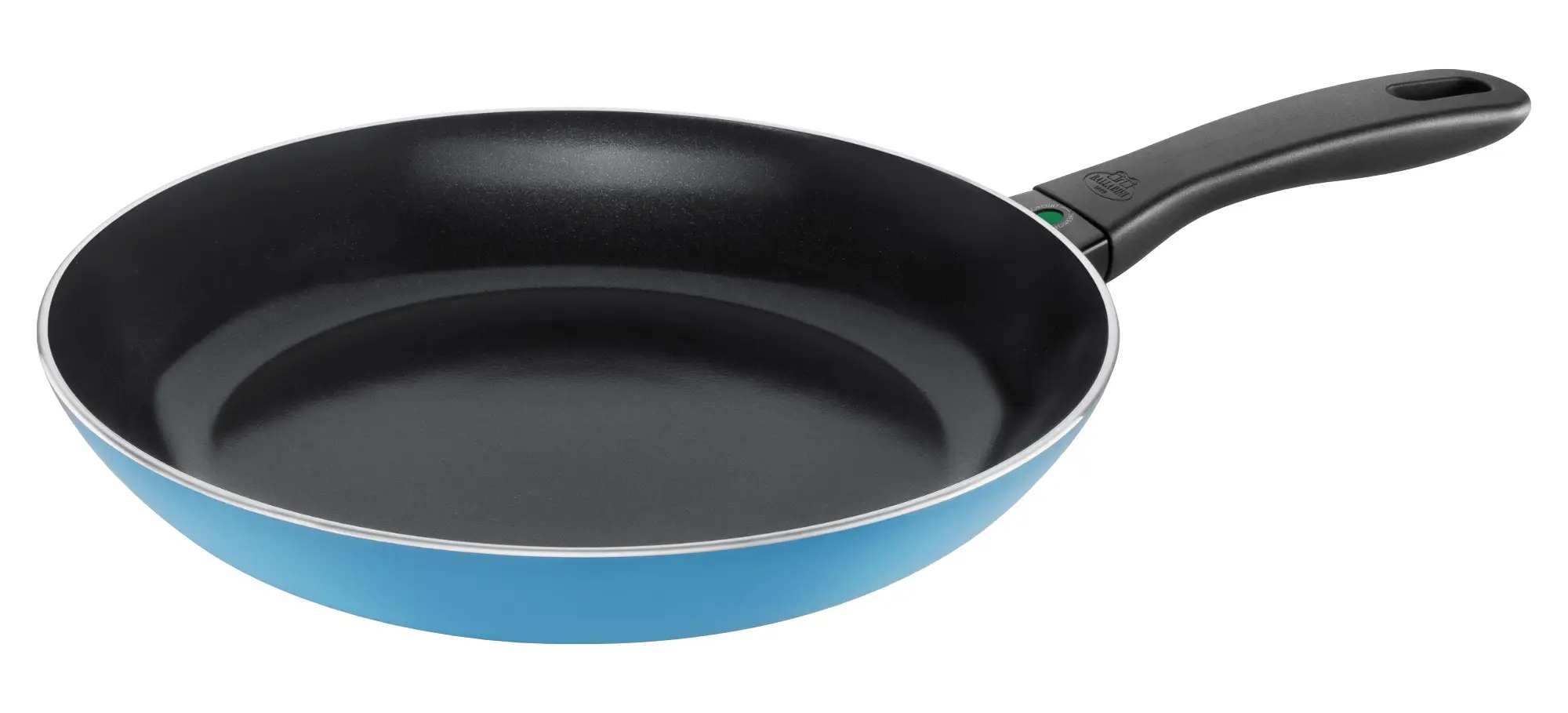 Prezentowana patelnia o średnicy 28 cm i niebieskim kolorze po wewnętrznej stronie pokryta została innowacyjną, błyszczącą, czarną powłoką nieprzywierającą KERA GLOSS, która umożliwia smażenie w wysokich temperaturach dla pysznych, złocistych i chrupiących potraw. Kontrolę temperatury ułatwia przy tym umieszczony w uchwycie wskaźnik THERMOPOINT, który zmienia kolor w miarę nagrzewania się naczynia. Innowacyjna technologia Radiant Induction z kolei sprawia, że dno patelni rozprowadza ciepło szybko i równomiernie, pomagając uzyskać doskonałe rezultaty kulinarne. Zaprojektowany przez Matteo Thuna i Antonio Rodrigueza uchwyt z czarnego tworzywa sztucznego ma ergonomiczny kształt i właściwości antypoślizgowe, dzięki czemu pewnie leży w dłoni, pozwalając na wygodne manewrowanie patelnią. Naczynie może być używane na wszystkich rodzajach kuchenek (daje szczególnie dobre wyniki na kuchenkach indukcyjnych) i łatwo myte zarówno ręcznie jak i w zmywarce.