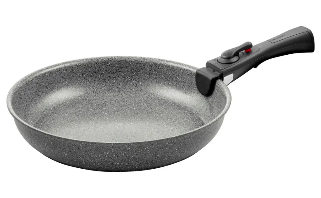Prezentowana płytka patelnia o średnicy 28 cm pokryta została powłoką Ceraforce Granitium, która nie zawiera PFAS, jest do trzech razy trwalsza niż poprzednie powłoki ceramiczne marki i charakteryzuje się doskonałymi właściwościami nieprzywierania, co pozwala na przygotowywanie dań z minimalną ilością tłuszczu. Zastosowana technologia dna Radiant sprawia, że patelnia szybko i równomiernie się nagrzewa, co przekłada się na uzyskiwanie lepszych rezultatów kulinarnych. Odporność na temperaturę do 230°C umożliwia z kolei używanie jej w piekarniku (bez uchwytu). Naczynie dostosowane jest do wszystkich rodzajów kuchenek, również do indukcji. Dołączony w komplecie uchwyt z tworzywa sztucznego może wytrzymać nawet do 10 kg i jest wyposażony we wkładki silikonowe. Dodatkową zaletą korpusu jest możliwość mycia zarówno ręcznie jak i z pomocą zmywarki.
