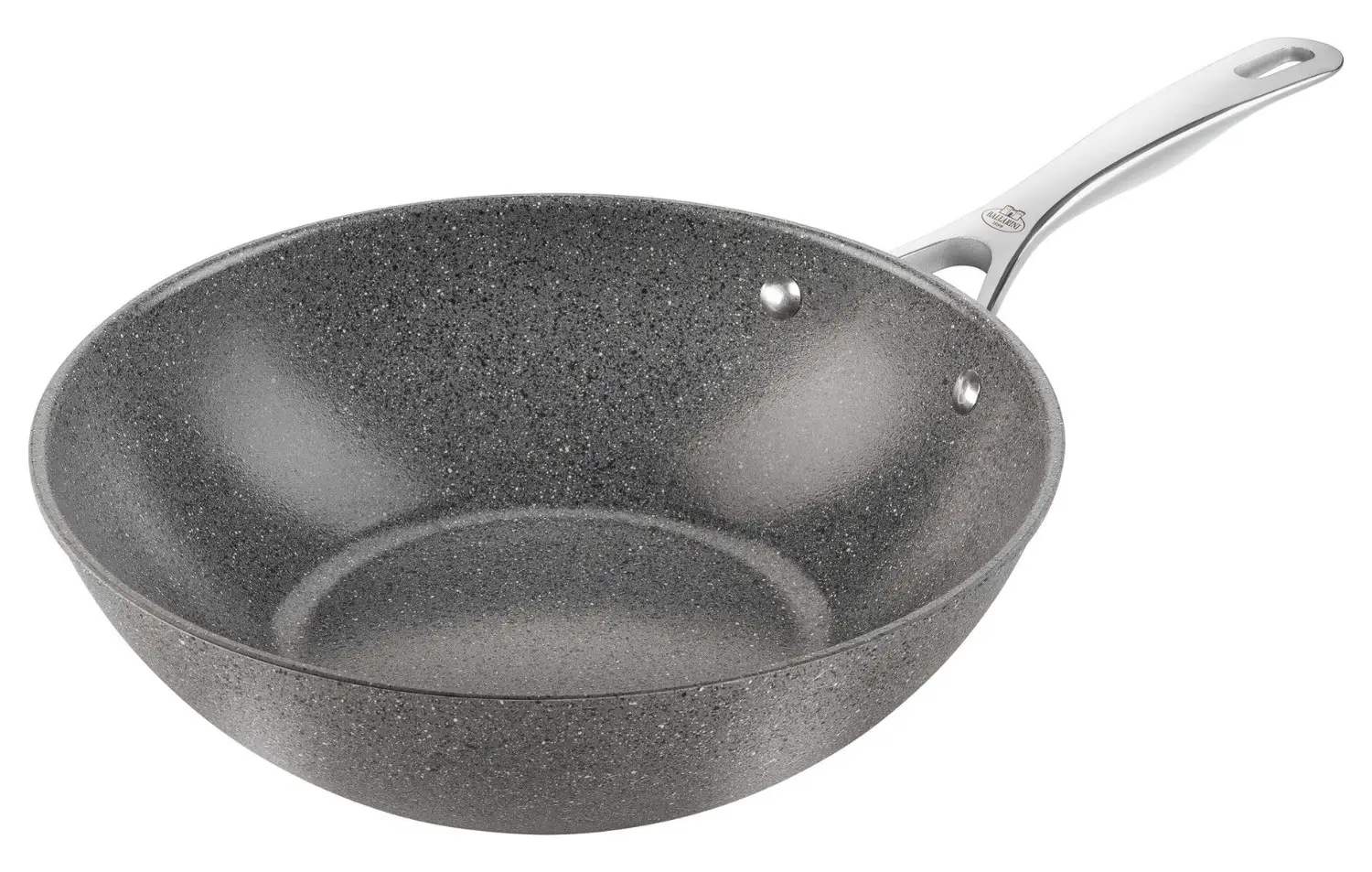 Prezentowany wyprodukowany we Włoszech wok o średnicy 30 cm pokryto nowoczesną powłoką CERAFORCE TITANIUM, która dzięki wzmocnieniu warstwą tytanu jest nawet pięć razy bardziej trwała niż dotychczasowe powłoki ceramiczne. Zapobiega ona przywieraniu potraw, ograniczając przypalanie i ułatwiając czyszczenie. Korpus woka wykonano z litego aluminium, co w połączeniu z innowacyjną podstawę Radiant zapewnia równomierne nagrzewanie na wszystkich rodzajach kuchenek, w tym indukcyjnych. Produkt posiada również ergonomiczny uchwyt ze stali nierdzewnej z funkcją stay-cool gwarantujący komfortowe i bezpieczne użytkowanie. Wok nadaje się do używania w piekarniku (odporność termiczna do 230°C). Można go myć w zmywarce, ale zaleca się mycie ręczne.