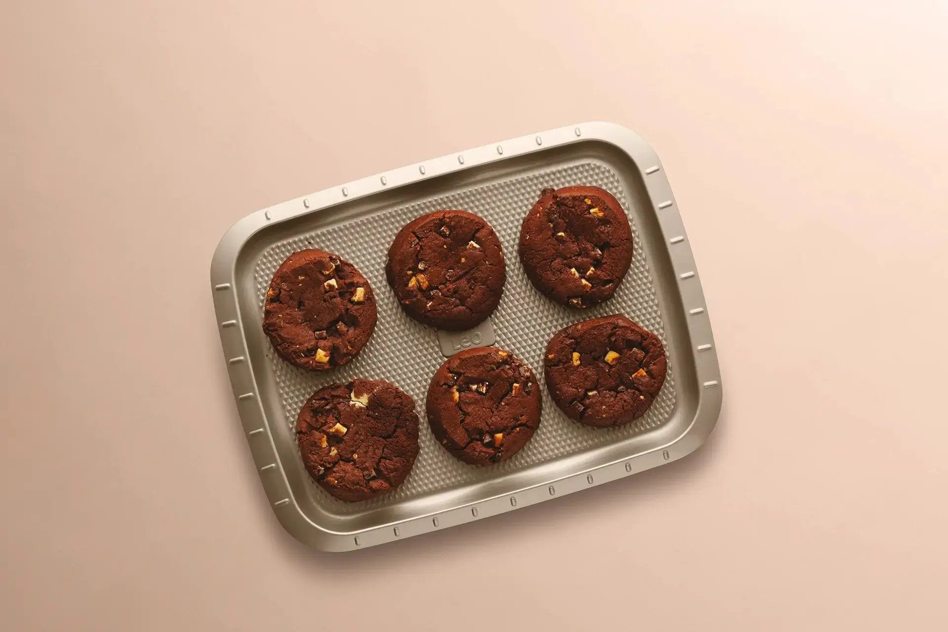 Wykonana z lekkiej stali węglowej blacha zapewnia równomierne rozprowadzanie ciepła, co przekłada się na perfekcyjnie wypieczone i zarumienione ciastka. Diamentowa faktura dna poprawia cyrkulację powietrza, wspomagając równomierne pieczenie.