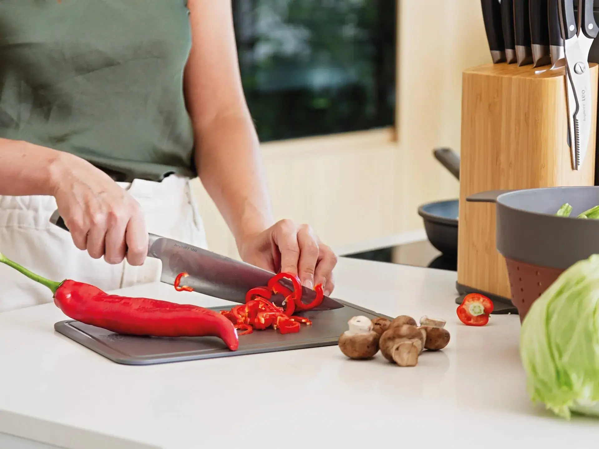 Nóż szefa kuchni BergHOFF Leo Graphite 20 cm to wszechstronne narzędzie, które szybko stanie się jednym z najczęściej używanych noży w Twojej kuchni. Doskonale sprawdzi się do krojenia, siekania oraz szatkowania mięsa, warzyw i ziół.