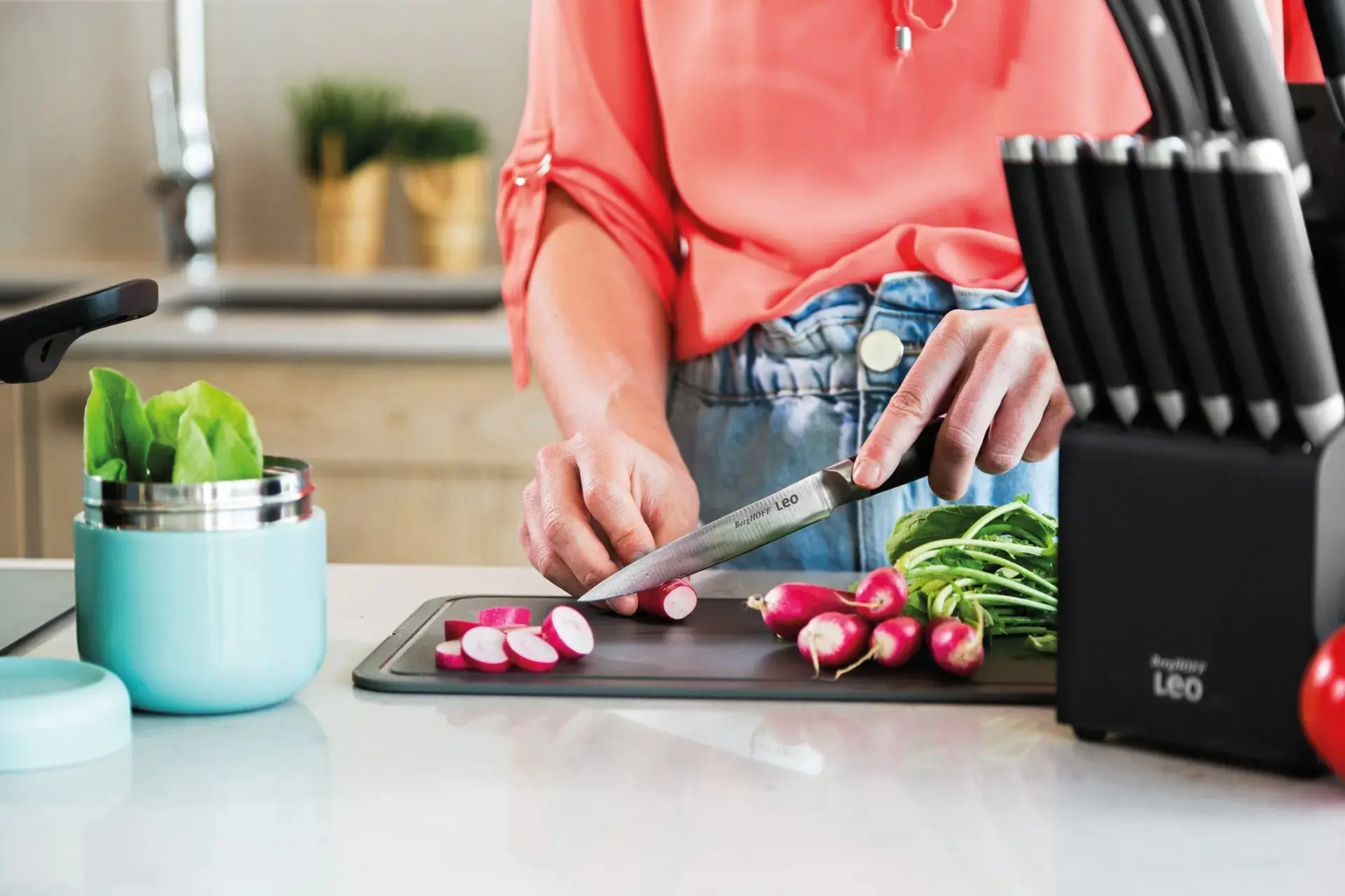 Nóż użytkowy BergHOFF Leo Graphite 12 cm to jeden z najbardziej wszechstronnych noży w każdej kuchni. Idealnie sprawdzi się podczas codziennych prac – od obierania i krojenia warzyw, przez porcjowanie mięsa, aż po krojenie pieczywa.