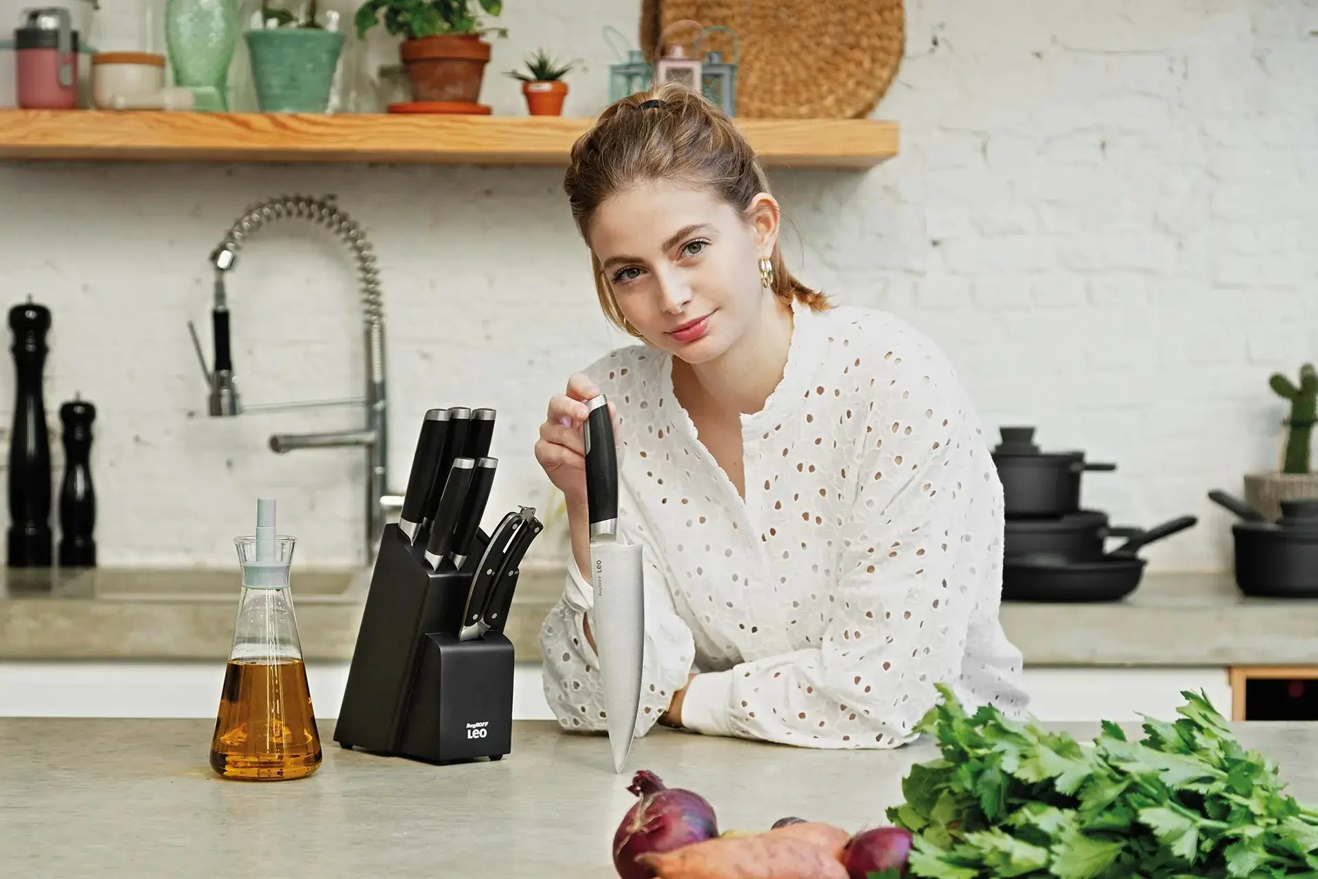 | Dodatkowe funkcje: | • Antypoślizgowa podstawa bloku • Dodatkowe miejsce na nóż Santoku i nożyce do drobiu • Możliwość rozbudowy zestawu |