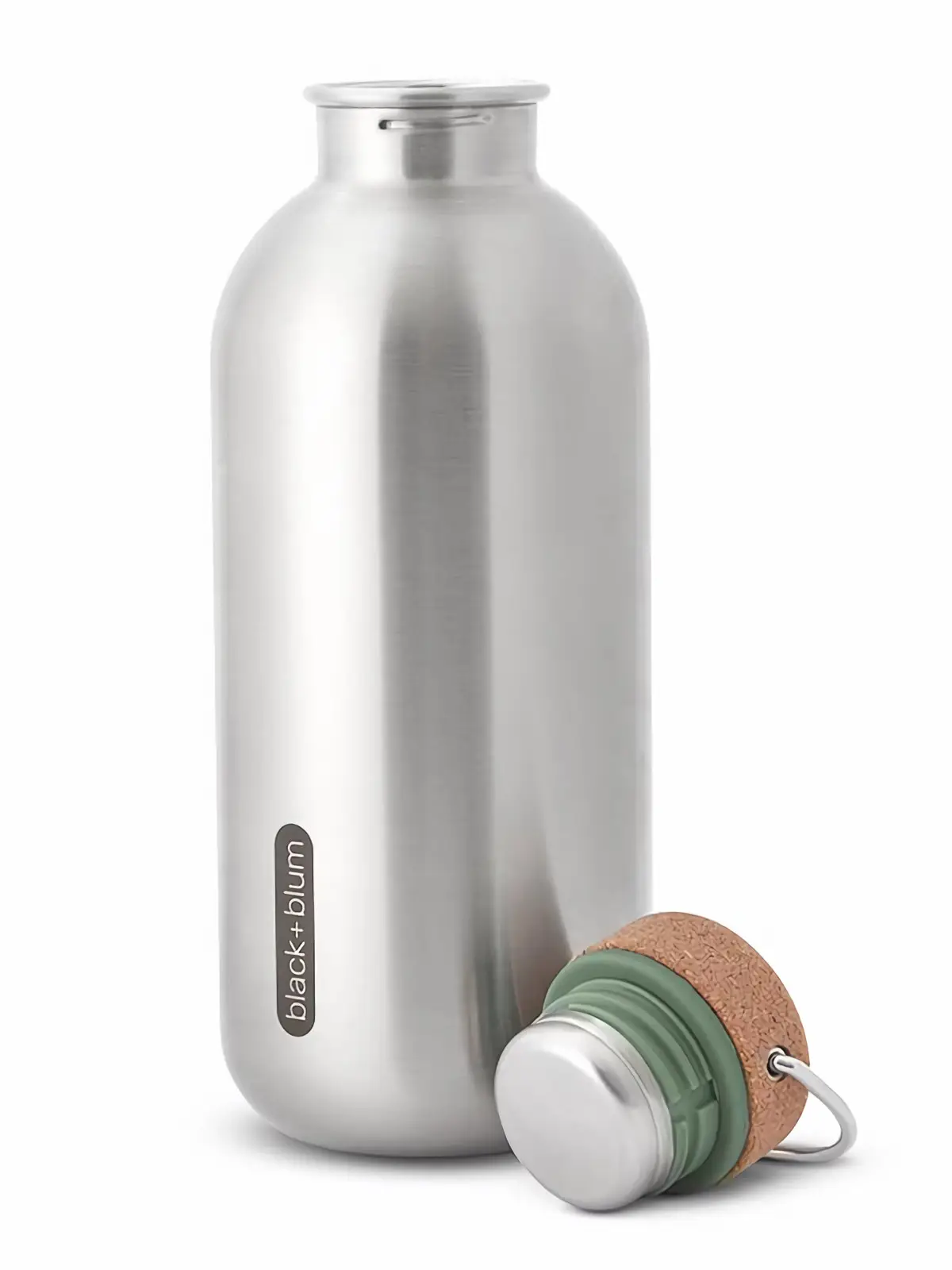 Black+Blum - Butelka na wodę stalowa z korkiem oliwkowa