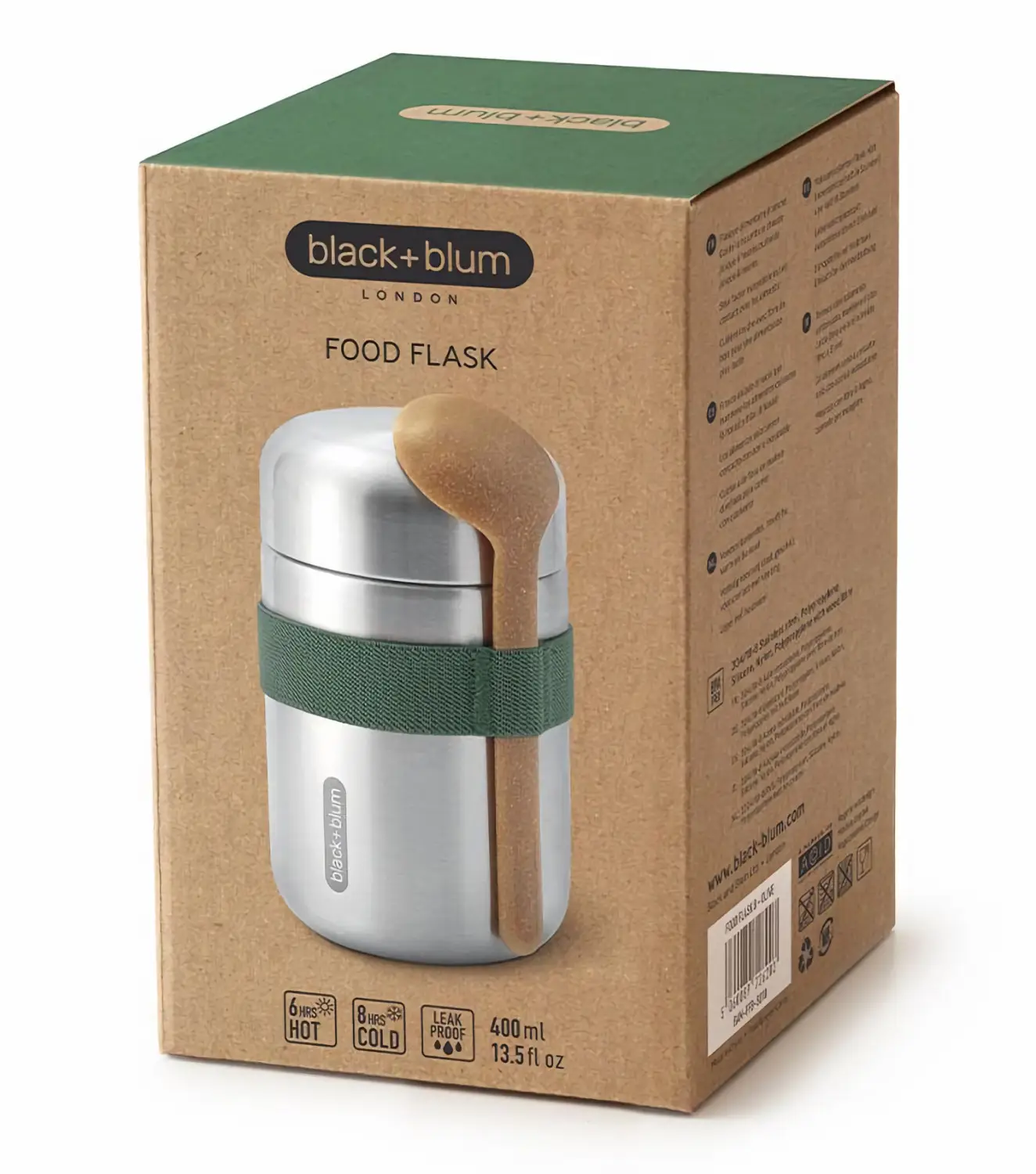 Nowoczesny, minimalistyczny design funkcjonalnych termosów obiadowych marki Black+Blum zaprojektowany został tak by ułatwić spożywanie posiłków poza domem, w ruchu czy w pracy. Mogące pojawić się przy użytkowaniu na wykonanej ze szczotkowanej stali nierdzewnej powierzchni zarysowania lub wgniecenia sprawią jedynie, że termosy zyskają na unikalności i charakterze. Materiały z których wykonano termosy są wolne od BPA. Zabezpieczona elastyczną gumką trzymającą ją w miejscu, wykonana z polipropylenu z dodatkiem naturalnego włókna drzewnego (20%), ergonomiczna łyżka zainspirowana została azjatyckimi łyżkami do zup i ze względu na długi uchwyt pozwoli z łatwością sięgnąć w głąb pojemnika.