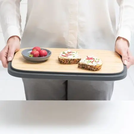 Pojemnik na chleb Nic, możemy bez najmniejszego problemu przenosić dzięki wygodnemu uchwytowi. Chlebak posiada estetyczną bambusową pokrywkę, która może posłużyć nam jako taca do serwowania chleba czy bułek. Dzięki perforowaniom na dnie, możemy dłużej utrzymać świeżość pieczywa. Pojemnik możemy bez najmniejszego problemu wyczyścić.