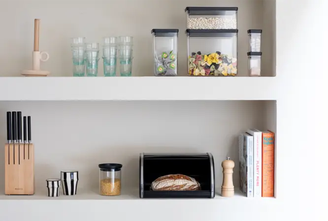 Chlebak średniej wielkości to doskonała propozycja do niedużych kuchni, o małej powierzchni użytkowej. Średnie chlebaki Brabantia swobodnie mieszczą pieczywo, jednocześnie nie zajmując dużo miejsca w kuchni. W małej kuchni każda wolna przestrzeń jest na wagę złota. Wypukłe chlebaki Brabantia zostały tak zaprojektowane, by zwiększyć oszczędność cennej przestrzeni. Możliwe jest wykorzystanie płaskiej powierzchni górnej na postawienie przyprawnika, pojemników kuchennych, wagi, czy innych akcesoriów kuchennych.