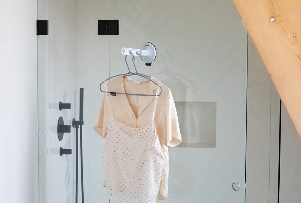 - Łatwe wietrzenie - haczyk na ubrania z przyssawką.