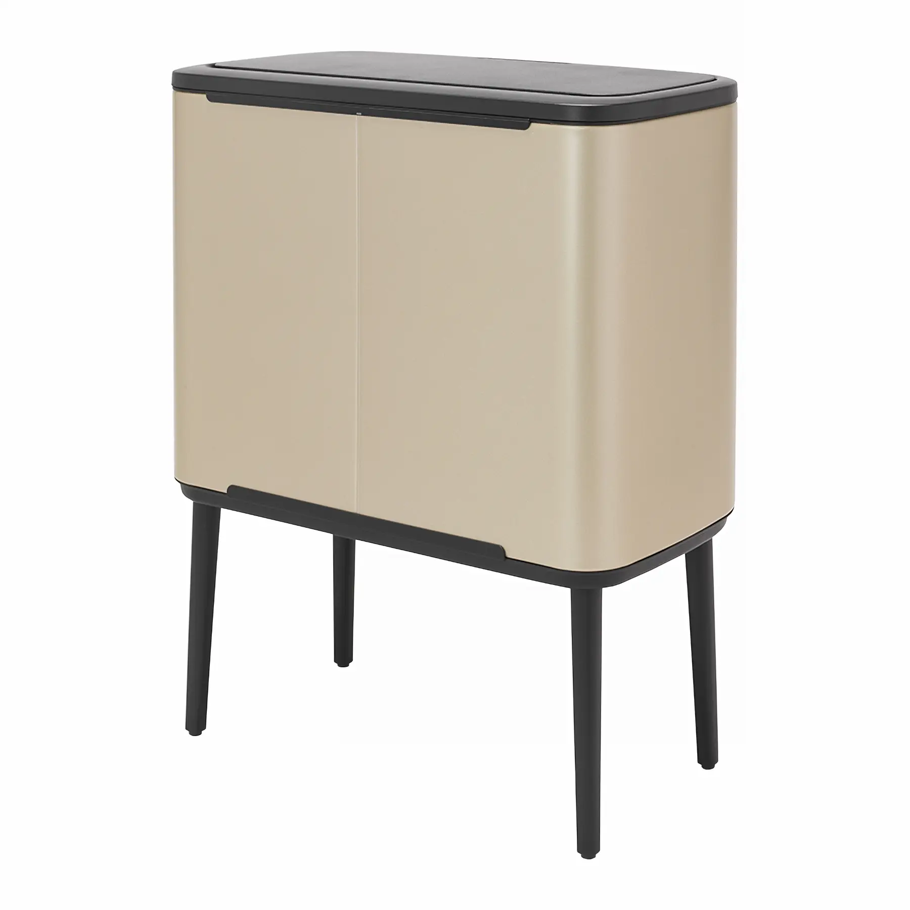 Brabantia Bo to seria koszy łącząca piękny design z dużą pojemnością użytkową. Dotykowa pokrywa "Soft-Touch" z ulepszonym mechanizmem otwierania otwiera się i zamyka łatwiej niż kiedykolwiek. Aby go otworzyć wystarczy lekki dotyk pokrywy. Dzięki wyjątkowemu zawiasowi pokrywa otwiera się cicho i dyskretnie. Wyjmowane wewnętrzne, plastikowe wiaderko, ułatwia wymianę worków. Dzięki dużemu otworowi wrzutowemu bez problemu pozbędziemy obszernych odpadów bez ryzyka pobrudzenia kosza. Nóżki zostały wyposażone w antypoślizgowe nakładki, zapobiegające zarysowaniom podłogi.
