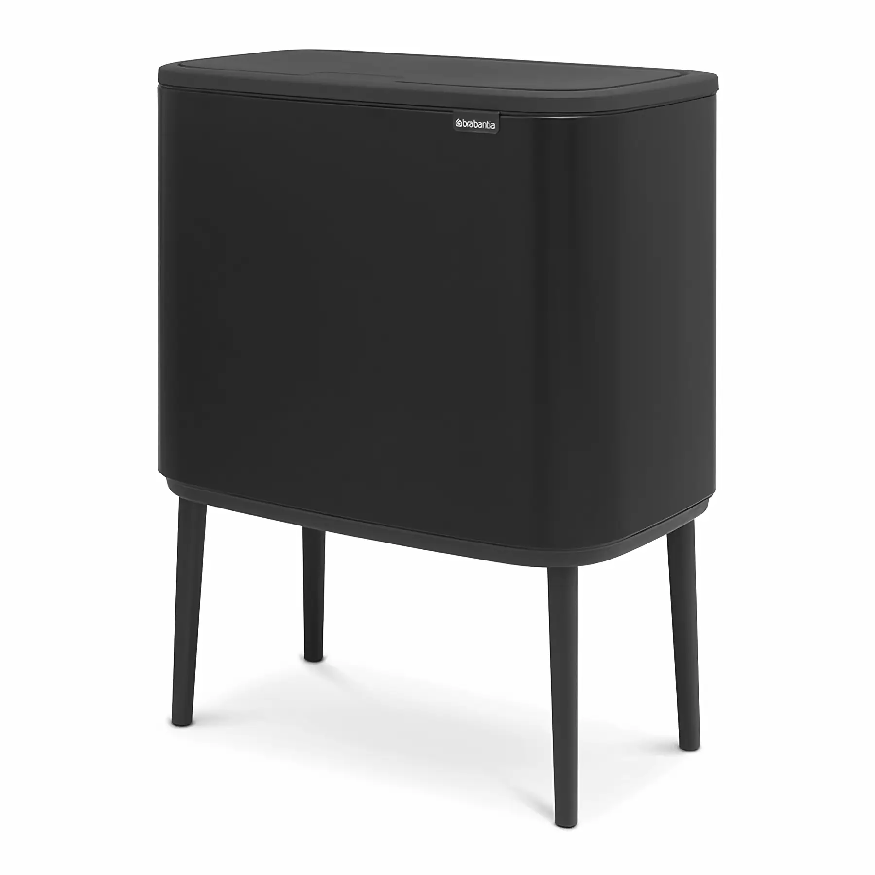 Brabantia Bo to seria koszy łącząca piękny design z dużą pojemnością użytkową. Doskonały do sortowania dzięki podziałowi na trzy komory. Zaprojektowany z myślą o przestrzeniach kuchennych oraz biurowych. Dotykowa pokrywa "Soft-Touch" z ulepszonym mechanizmem otwierania otwiera się i zamyka łatwiej niż kiedykolwiek. Aby go otworzyć wystarczy lekki dotyk pokrywy. Dzięki wyjątkowemu zawiasowi pokrywa otwiera się cicho i dyskretnie. Wyjmowane wewnętrzne, plastikowe wiaderko, ułatwia wymianę worków. Dzięki dużemu otworowi wrzutowemu bez problemu pozbędziemy obszernych odpadów bez ryzyka pobrudzenia kosza. Nóżki zostały wyposażone w antypoślizgowe nakładki, zapobiegające zarysowaniom podłogi.