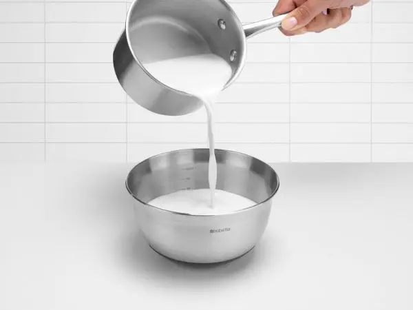 Miska kuchenna o pojemności 1 l marki Brabantia to funkcjonalne naczynie, które doskonale sprawdzi się w każdej kuchni. Wewnętrzne podziałki ułatwiają mieszanie składników, a zewnętrzna strona nadaje stylu. Delikatnie zaokrąglony brzeg został zaprojektowany tak, aby utrzymać miskę w optymalnej pozycji do mieszania, a silikonowe dno zapobiega ślizganiu się - wszystkie elementy wytrzymają temperaturę do 220ºC/448ºF. Miska marzeń!