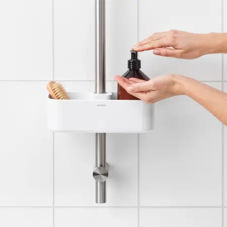 Organizer prysznicowy marki Brabantia to praktyczne i stylowe rozwiązanie do przechowywania akcesoriów kąpielowych w kabinie prysznicowej. Dzięki przemyślanej konstrukcji zapewnia łatwy dostęp do kosmetyków i akcesoriów, takich jak szampony, żele pod prysznic, myjki czy maszynki do golenia, pomagając utrzymać porządek podczas codziennej pielęgnacji.