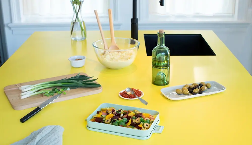 Brabantia Make & Take w wersji płaskiej to idealne rozwiązanie dla osób, które chcą wygodnie zabrać lunch do pracy, szkoły lub w podróż, nie zajmując przy tym dużo miejsca w torbie czy plecaku. Smukła konstrukcja sprawia, że pojemnik bez problemu mieści się nawet w cienkiej torbie na laptopa.