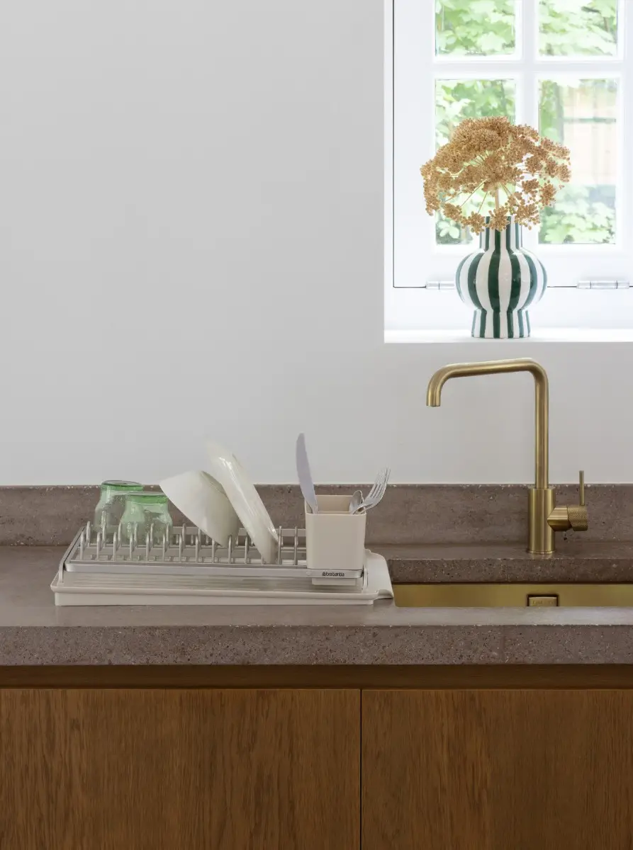 W dbałości o każdy szczegół suszarki Brabantii wykonane zostały z nierdzewnych materiałów. Pałąki na naczynia z odpornego na kamień, osad i wżery aluminium. Podstawa i koszyk na sztućce natomiast z wysokiej jakości tworzywa. Woda z podstawy suszarki ustawionej przy zlewie sama spływa do zlewozmywaka, co zwiększa kuchenną higienę. Suszarka jest też łatwo rozkładana, dzięki czemu łatwo i dokładnie ją umyjemy.