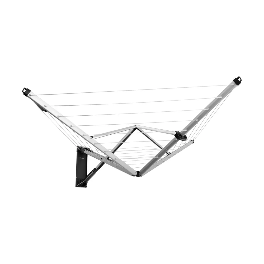Brabantia WallFix 24 m to innowacyjna suszarka ścienna, która po złożeniu niemal znika z pola widzenia. Dzięki kompaktowej konstrukcji i prostemu systemowi składania jednym ruchem, idealnie nadaje się do domów z ograniczoną przestrzenią.